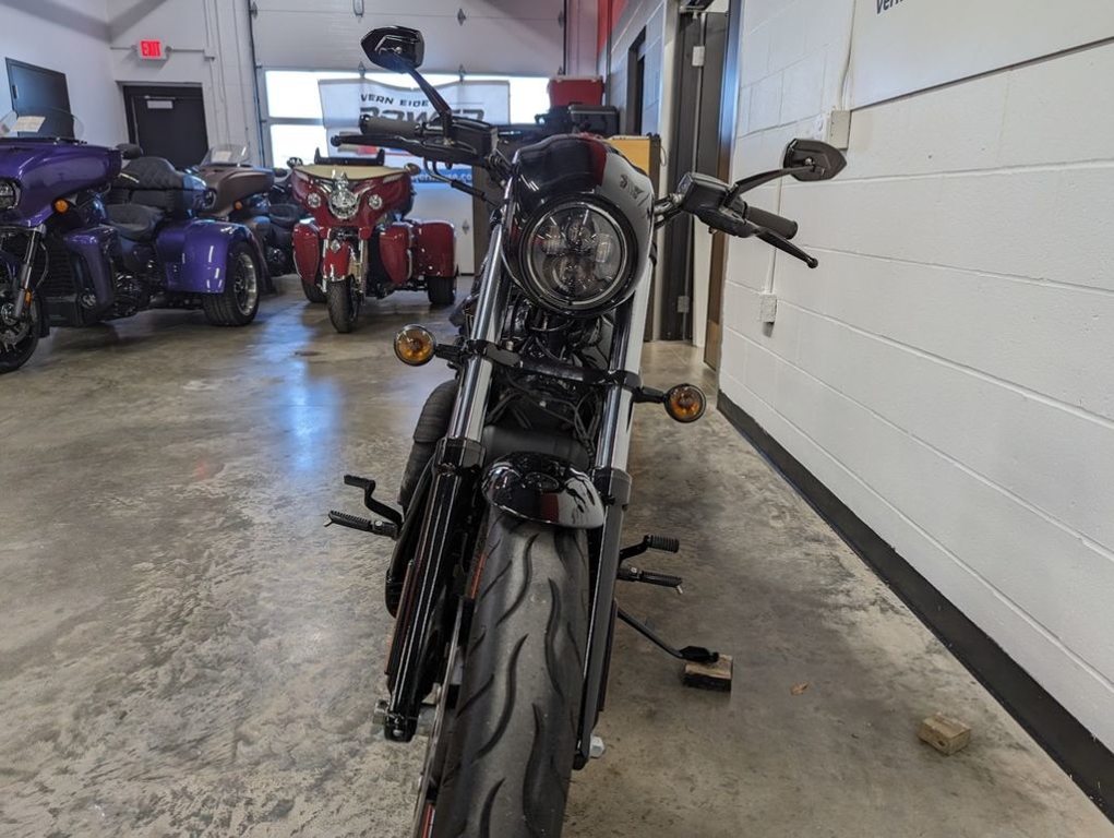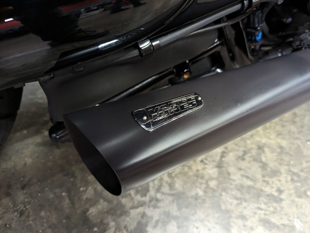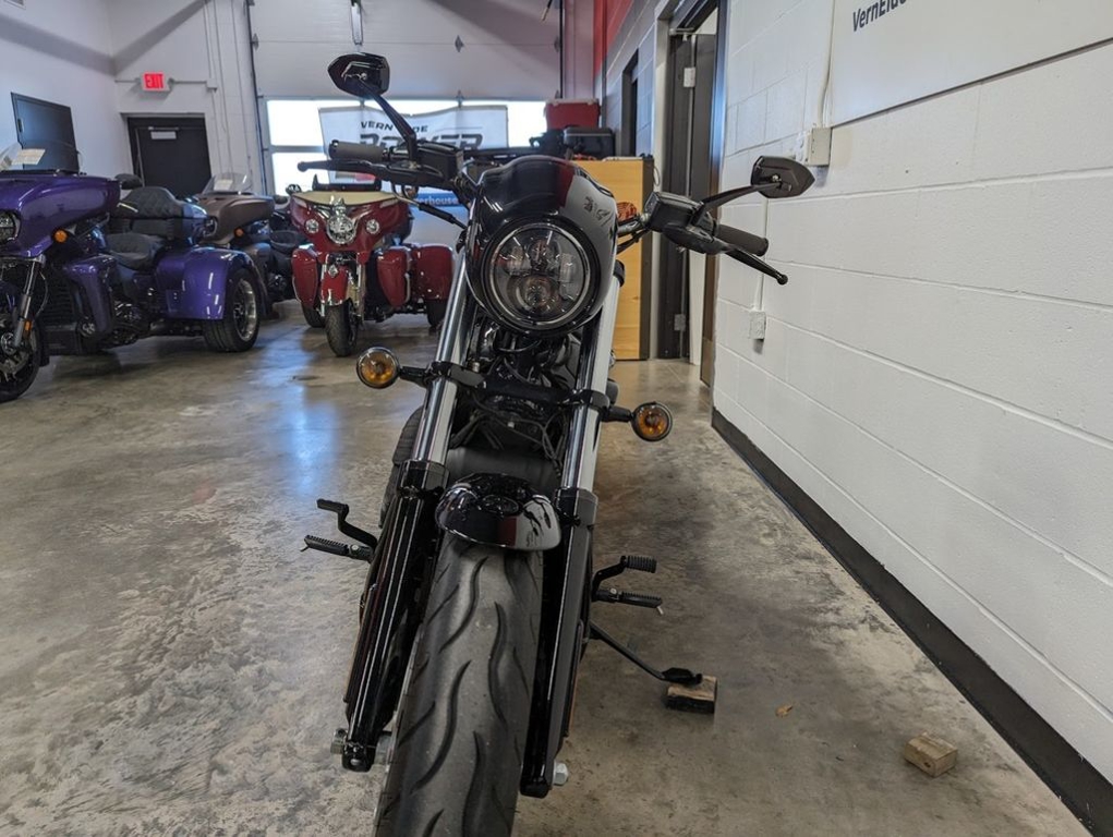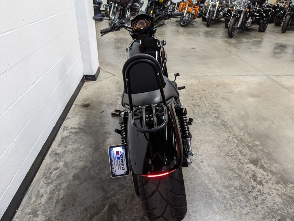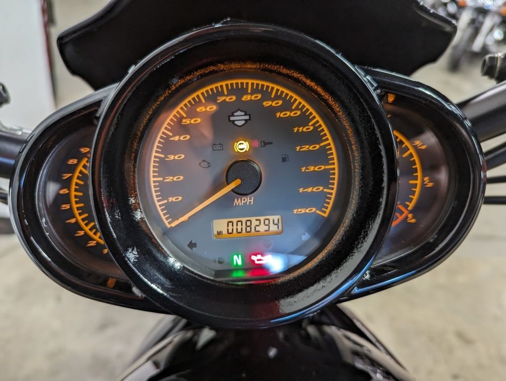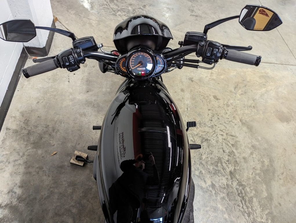 An all-black Revolution V-Twin™ engine, fork legs, swing arm and other blacked-out components give the VRSCDX Night Rod® Special a raw, street-tough attitude. A nacelle surrounds a round reflector-optic headlight. The brushed aluminum Straight-shot Dual mufflers have black end caps and exhaust shields. Drag bars and forward foot controls put the rider in a stretched-out posture. A contrasting racing stripe paint scheme traces the length of the bike. Black Slotted cast aluminum wheels have a fine orange stripe on the rim. A seat height of just 25.2-inches is the lowest or any VRSC model. Available in Black Denim with a Vivid Black stripe, in Vivid Black with a Pewter Pearl stripe, or in Vivid Black with a Mirage Orange Pearl stripe.