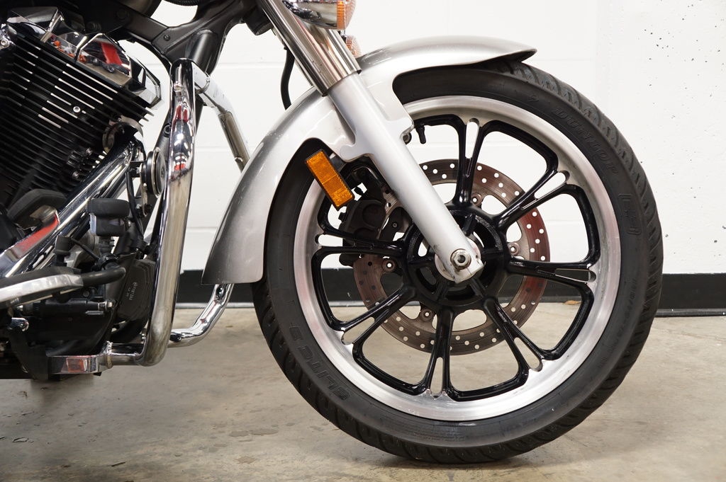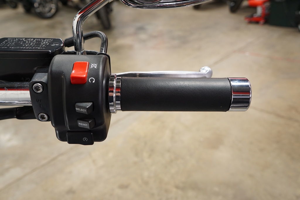 The steel double-cradle frame is long and low, contributing to the bike’s spacious 95.9-inch (2435mm) overall length and 66.3-inch With a seat height a mere 26.5 inches off the pavement, one of the lowest around, and a fuel tank that’s made as narrow as possible where it meets the seat, it is easy for most riders to put both feet firmly on the ground.