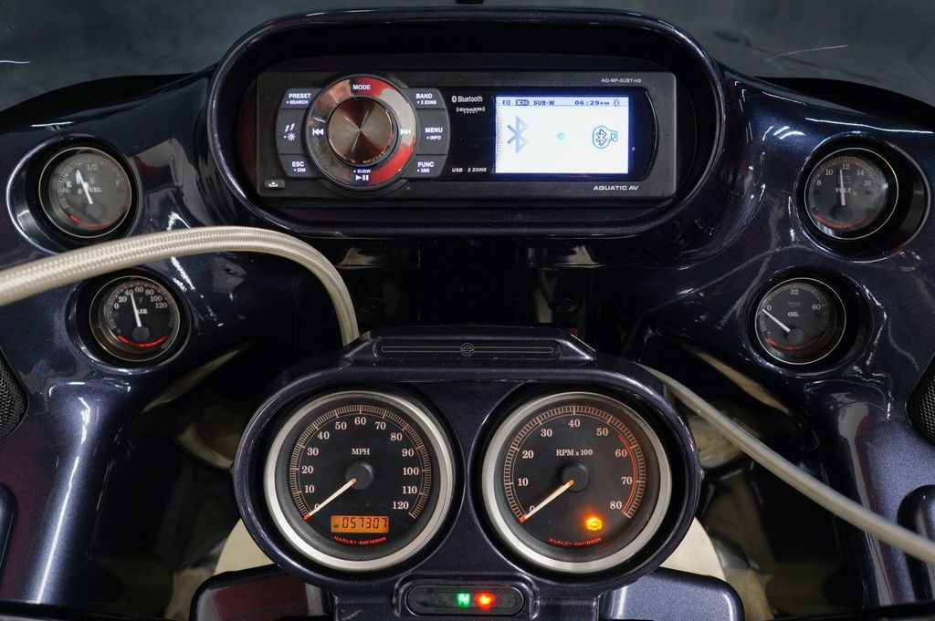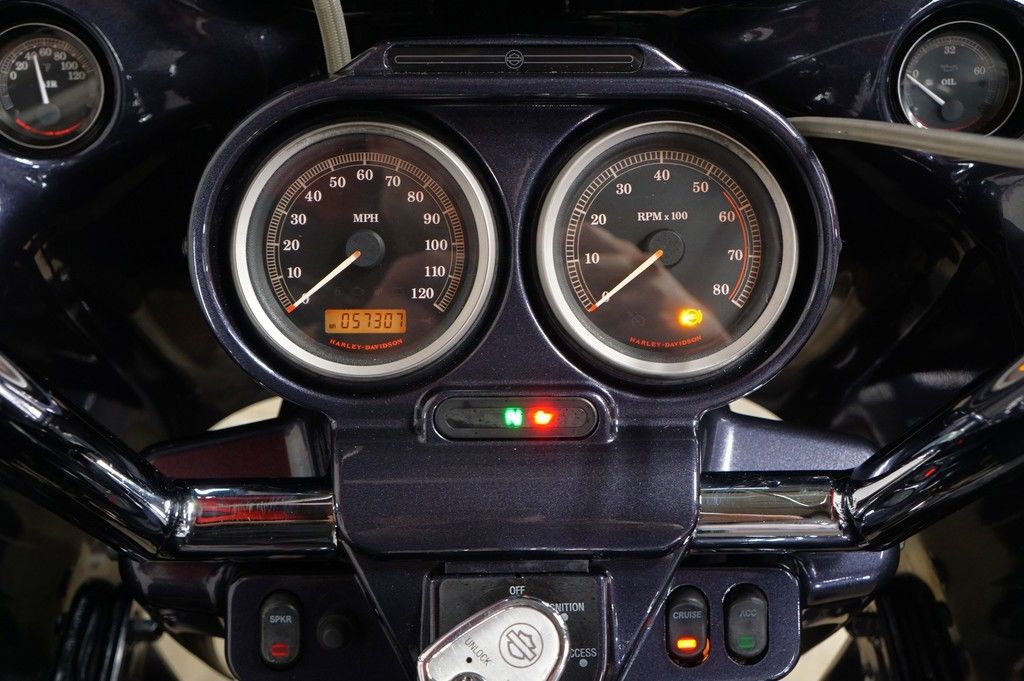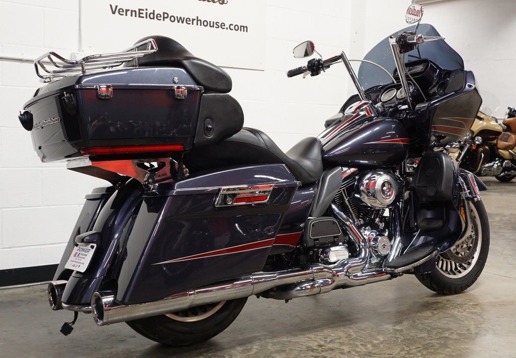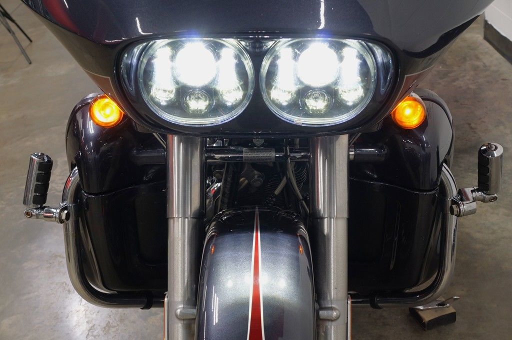 New for 2011 is the Harley-Davidson® Road Glide® Ultra FLTRU, a premium feature bike for your motorcycle travel. This bike will give you long-haul touring features and custom style including, the GTX saddlebags, Tour-Pak, large 17-inch front wheel, high output accessory connector, cruise control, and comfortable motorcycle seat. Also take note of the frame mounted Harley® fairing offering you dual storage compartments plus wind protection for your motorcycle travel. The motorcycle seat on the Road Glide® Ultra FLTRU gives comfort to the driver and any passenger.