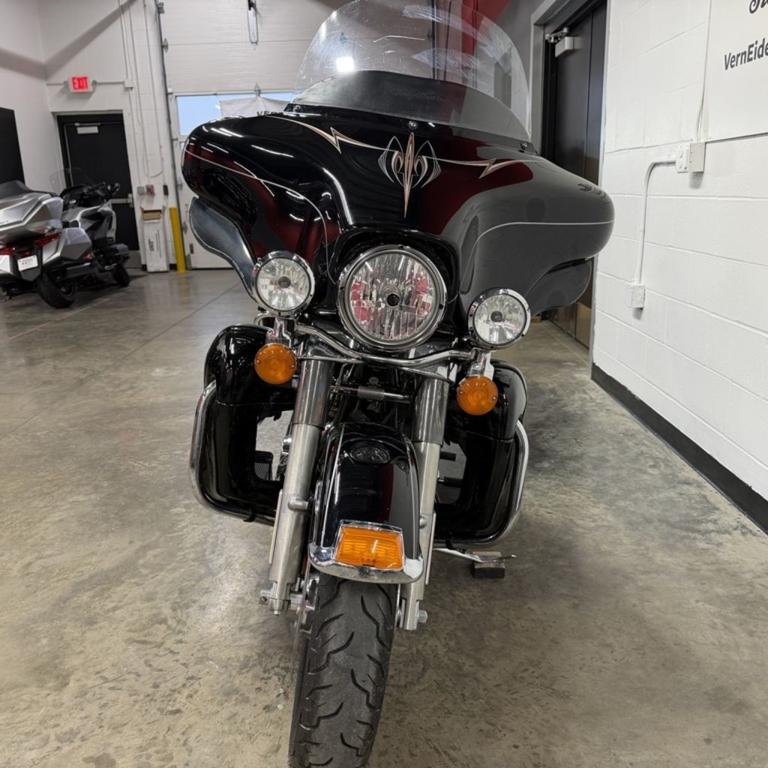 The 2013 Harley-Davidson® Electra Glide® Ultra Limited model FLHTK is a premium featured touring bike full of authentic Harley-Davidson® grand American touring style. For 2013, the Electra Glide® Ultra Limited model comes in a limited, serialized 110th Anniversary Special Edition, featuring exclusive commemorative anniversary styling elements and premium features that make it a top-of-the-line model and a true work of living art, with finely forged finishes that age and transform in a manner unique to each vehicle. Some of the bike's premium features include: air-cooled Twin Cam 103™ engine for powerful performance, ABS brakes, heated hand grips, titanium face gauges, Tour-Pak inserts, a premium Tour-Pak luggage rack, 28-Spoke contrast chrome wheels, and special Ultra Limited identifier medallions. Also found on the Harley® Electra Glide® Ultra touring bike is a 6 gallon fuel tank so you have to stop less for fuel. Harley® has many other motorcycle touring bikes, all to provide you with comfort and style. Be sure to look at the Road Glide Ultra with its frame mounted Harley® fairing for your motorcycle travel as well as all of the other H-D® touring motorcycles.