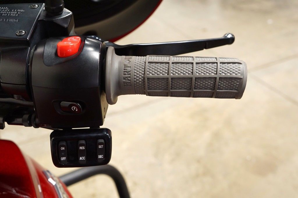 Out on the open road, go ahead and activate the cruise control for an easy, relaxed ride. This automotive-qualify cruise control is easy to activate and set, and it reliably maintains the desired speed. To de-activate it, simply press “Off” or engage the clutch lever or either brake.