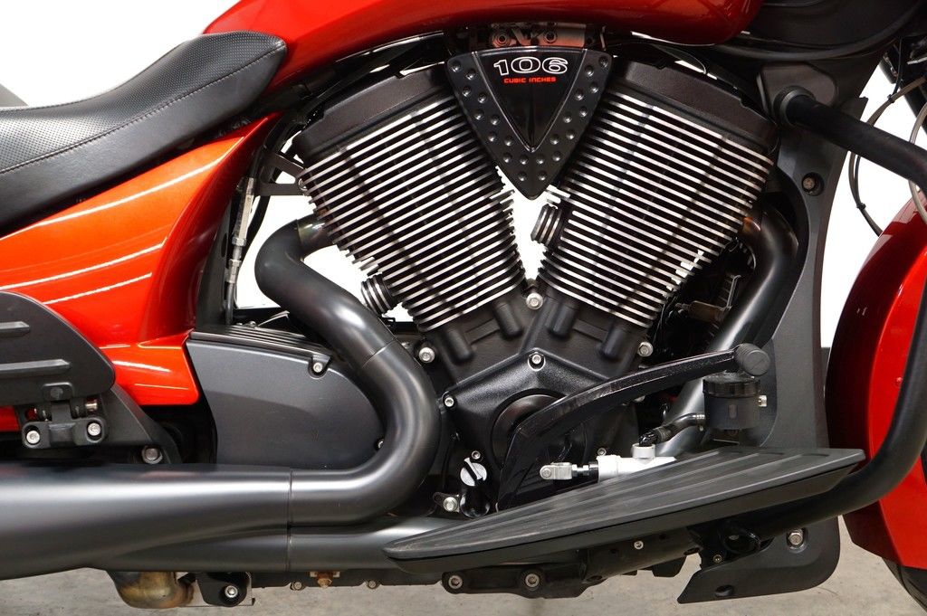 Features May IncludeThe Victory® Freedom® 106/6 V-Twin is a 106-cu. in. powerplant that pumps out 106 ft-lb of arm-straightening, street-churning torque. It’s a counter-balanced, fuel-injected engine that delivers impressive performance for riders who like to lead, not follow.
