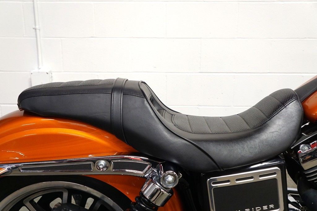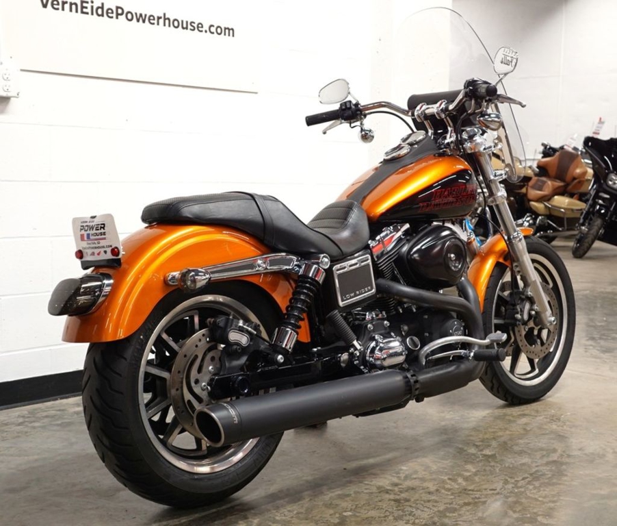 The new Harley-Davidson® Dyna® Low Rider® motorcycle is an easy-handling, street custom motorcycle with a low seat height. It's an easy to maneuver motorcycle with big street custom styling features. From custom mag wheel to custom mag wheel it's a low-riding, easy-handling feast for the eyes. The Low Rider® custom motorcycle has street custom features that hold true to the heritage of the Low Rider® motorcycle. The new Low Rider® motorcycle has a 70's inspired custom seat. The mag wheels roll straight out of hot rod culture. All these custom details surround a massive Twin Cam 103™ engine. The Harley-Davidson® Twin Cam engine is finished in chrome and wrinkle black and it breathes through a pork chop style air cleaner cover. The custom details and low profile deliver the authentic street custom look. Mid-mount controls and a low center of gravity make it easy to maneuver at low speed and through the corners. The Low Rider® motorcycle comes standard in Vivid Black premium Harley-Davidson® paint. Optional two-tone paint is available that will make the low riding Low Rider® model look even lower to the ground. Perfect fit ergonomics means the handlebar and seat on the new Low Rider® motorcycle can be adjusted to fit you like a glove. The perfect fit ergonomics make for a machine that fits you perfectly whether you're 5'1" or 6'1". It's a motorcycle that will fit you perfectly.