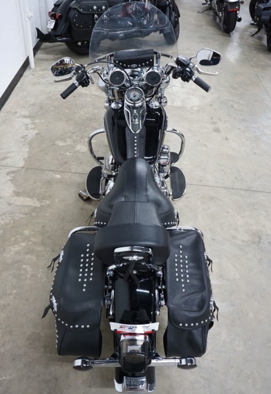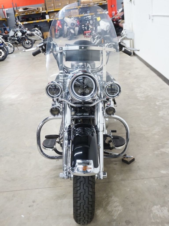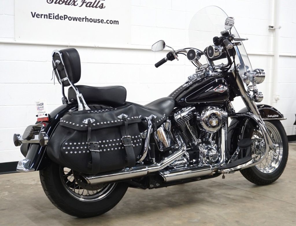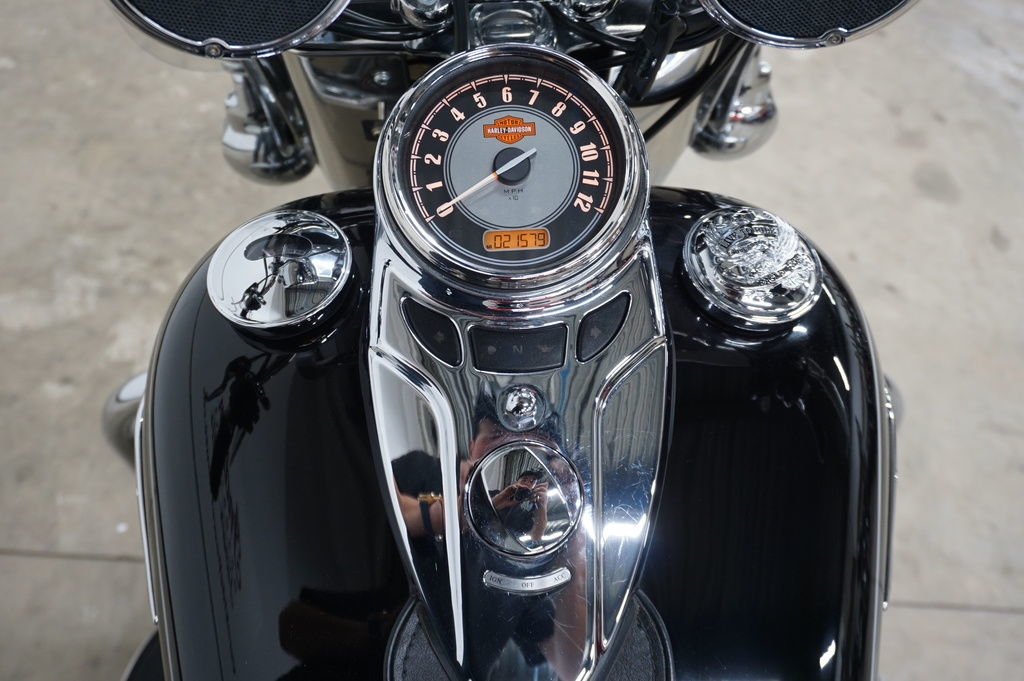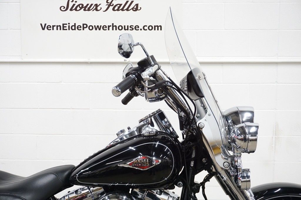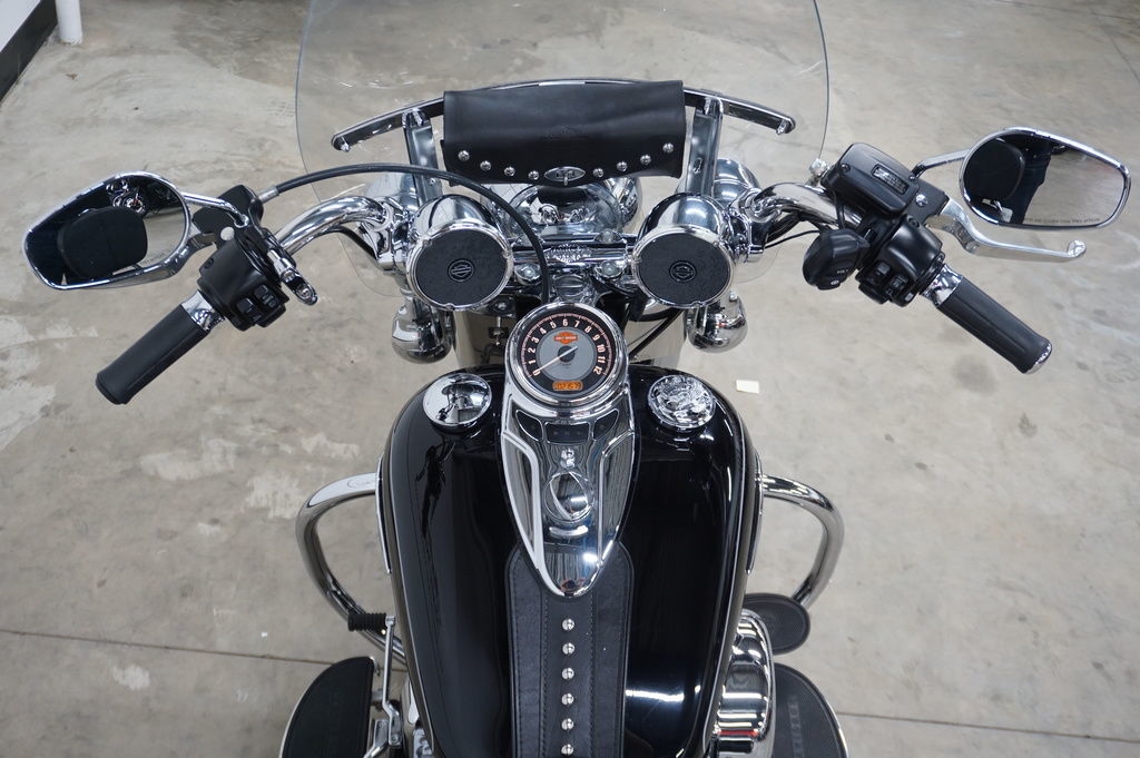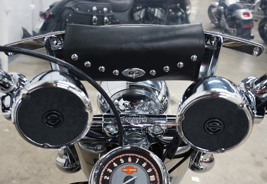 The unique medallion on the Heritage Softail® Classic motorcycle is glass-inlayed, cloisonné-and-chrome style and shows that Harley-Davidson® Softail® model heritage that runs in your blood. With a five-gallon capacity for long weekend cruising, we top off this tank with a nostalgic chrome "cats-eye" console, paint for days and style to spare.