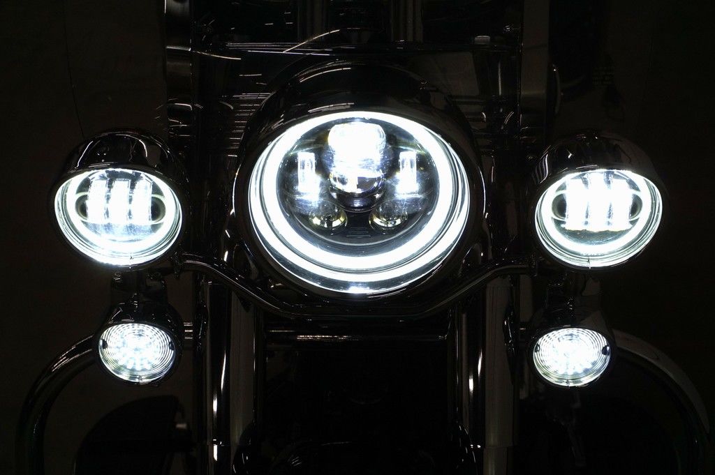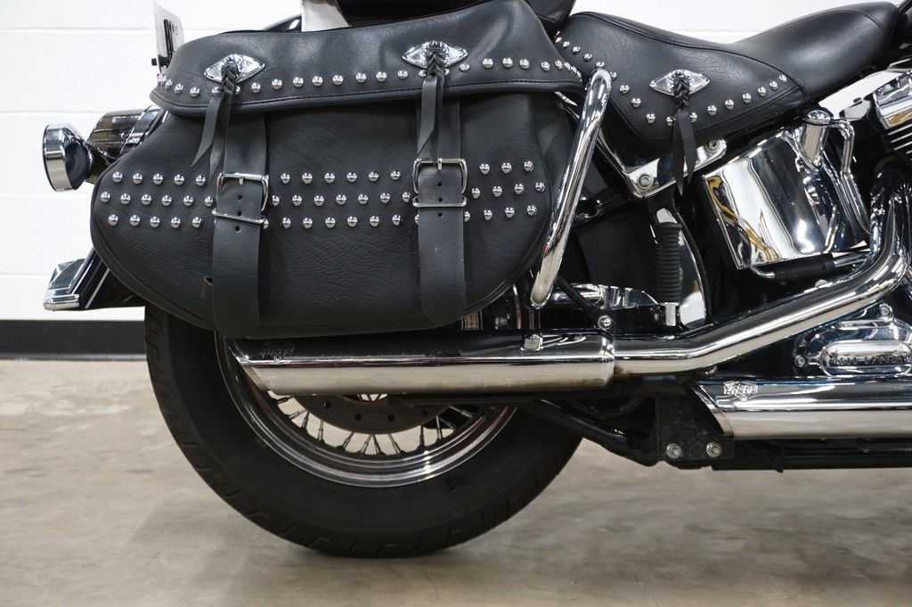 Do laced wheels, whitewalls and studded leather add to the way a bike feels on the road? Of course they do. It's these extras that make the Heritage Softail® Classic model the quintessential boulevard cruiser. As rallies were gaining grassroots traction in the '40s, you'd roll into Daytona Bike Week expecting new stories and new styles. There was really something going on, and it's still alive and well in this bike. Take the saddlebags, studded with style straight from that golden era, with hidden quick-detach buckles. Or the fenders—full and fluid, with chrome highlights and matching paint. Or that big, commanding 7-inch ball headlamp, chromed and classy. And let's talk wheels. You can go with the standard steel-laced wheels on blackwalls with a chrome hub. Or turn the clock all the way back with the optional chrome laces and wide whitewalls.