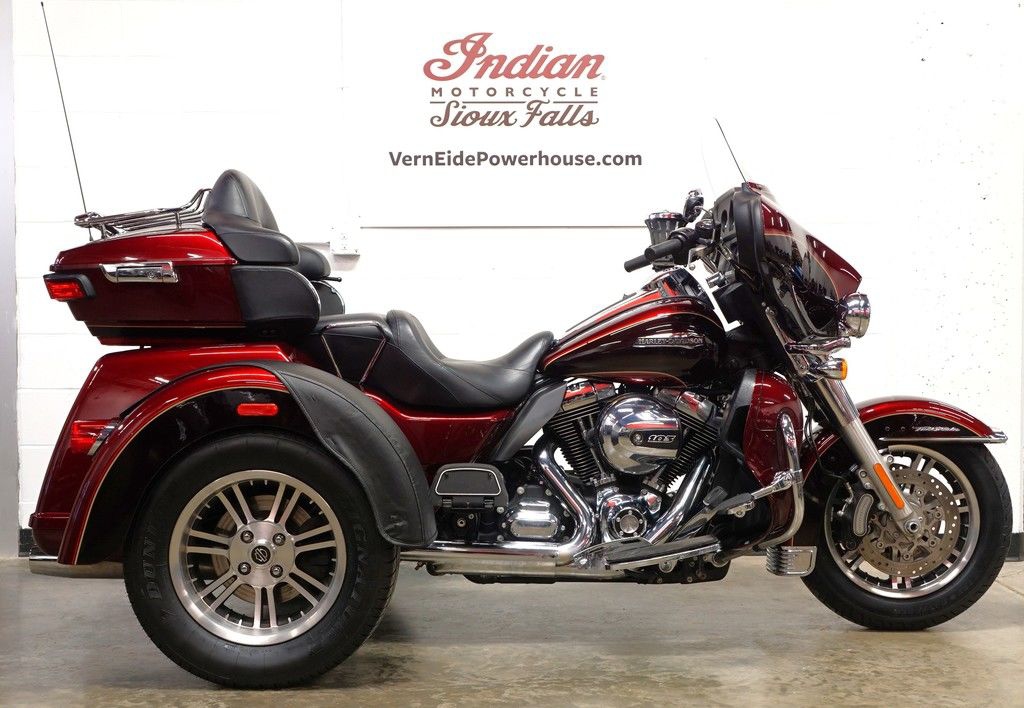 The 2015 Harley-Davidson® Trike motorcycles provide you long-haul comfort and confidence. As part of Project RushMore, for 2015 the Harley® Tri Glide® Ultra has been totally redesigned. The new twin-cooled high output Twin Cam 103™ engine is built to deliver more power for passing, climbing hills and carrying a passenger and luggage. There are new rear-to-front linked brakes for maximum stopping power. And the new Daymaker LED headlamp and LED fog lamps let you see farther than ever before. The new Boom Box 6.5 infotainment system features a 6.5 in full-color touch screen and the loudest, clearest speakers ever in a Harley-Davidson® motorcycle. The luggage spaces have been redesigned with more space inside, a sleek new look outside and new latches that can be operated with one hand. The iconic batwing fairing has also been changed to reduce head buffeting without losing its distinctive, authentic Harley-Davidson® style.