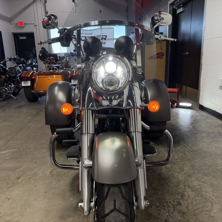 Stripped-down, hot rod style on an easy-handling frame that lets you roll with the confidence of three wheels.