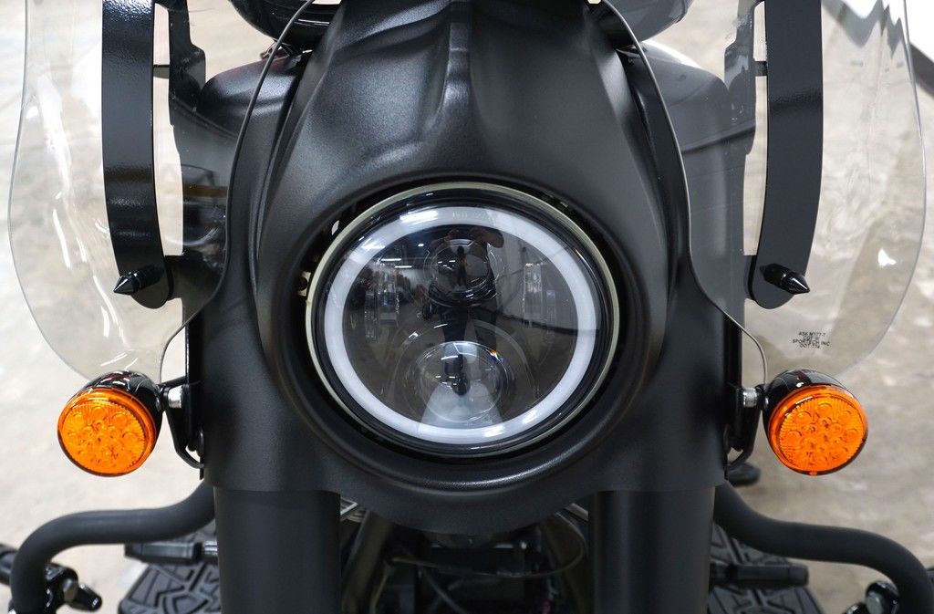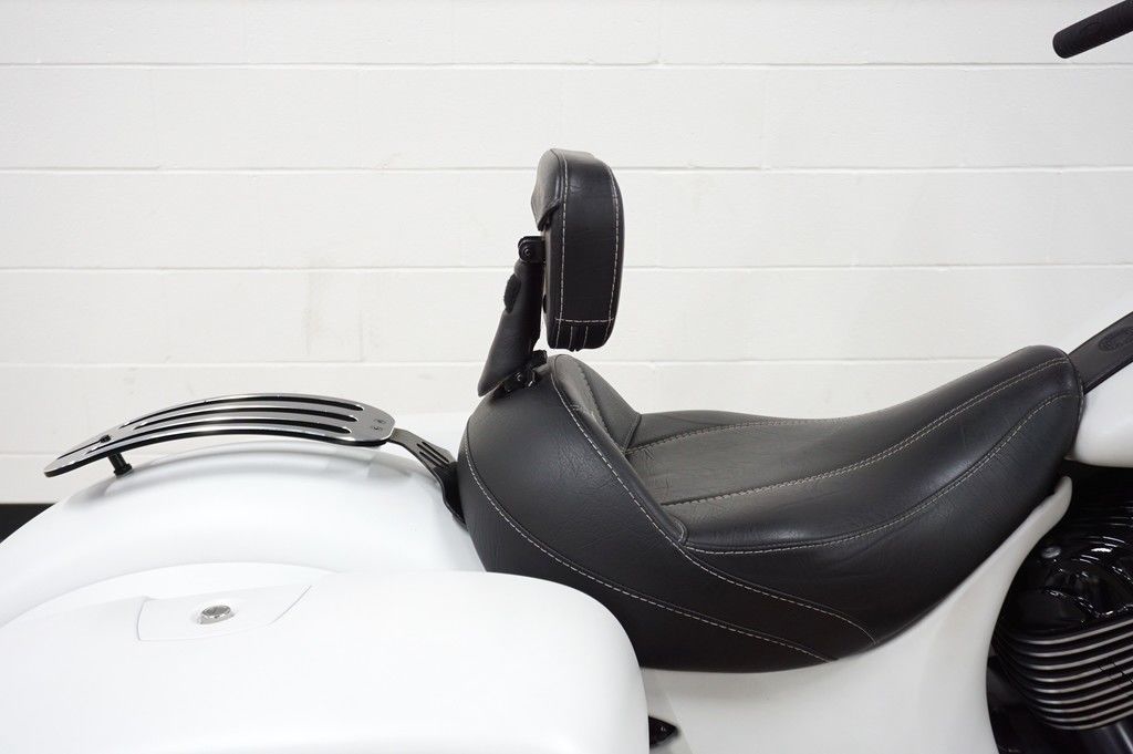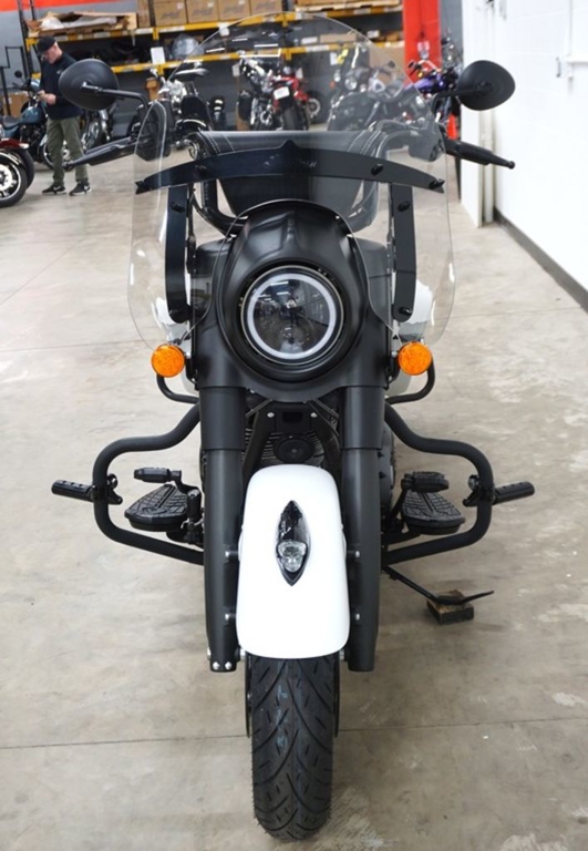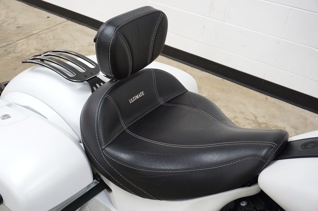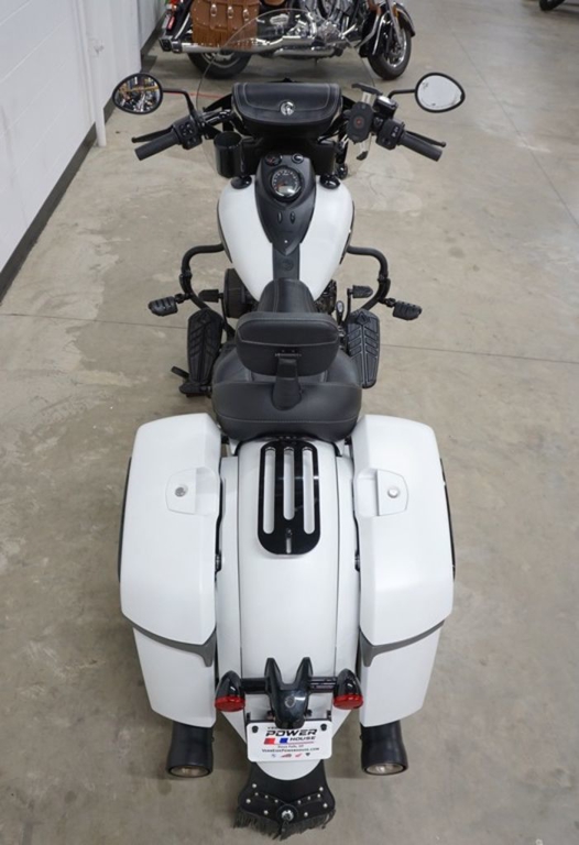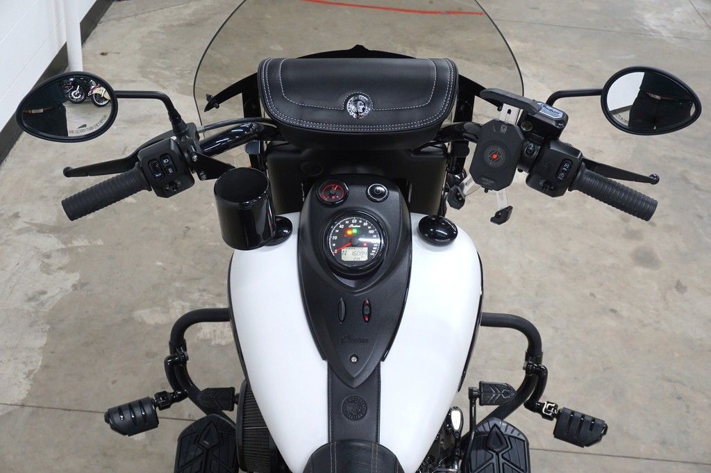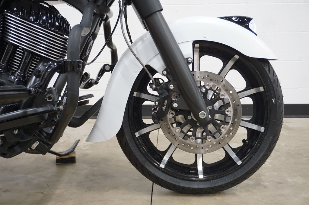 Inspired by the look of custom bikes, an open front fender exposes the 19" 10-spoke contrast-cut front wheel, with the iconic Indian Motorcycle headdress leading the way.