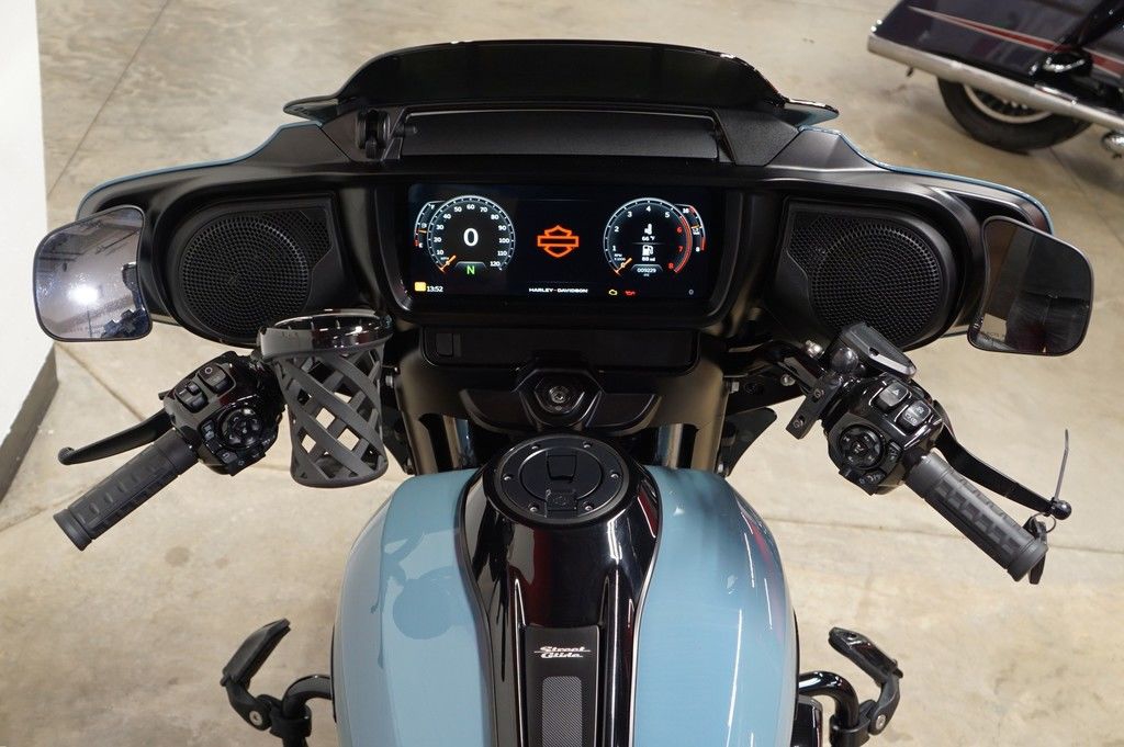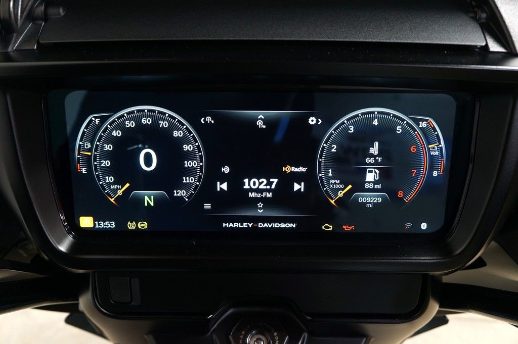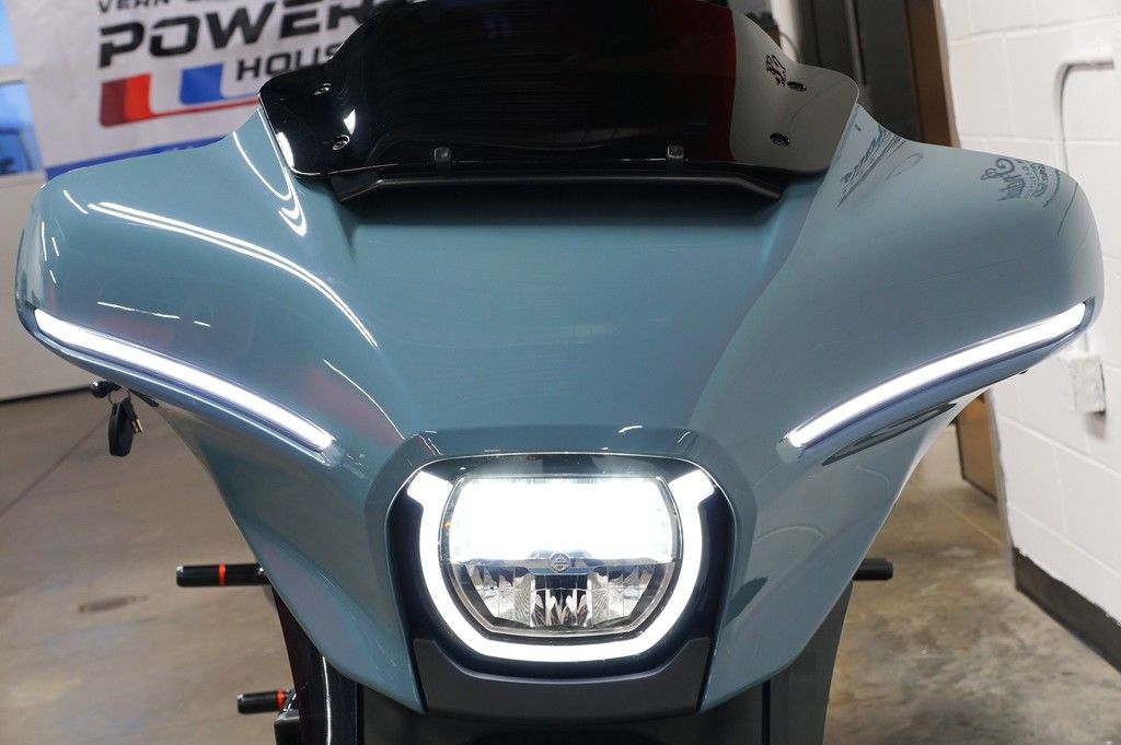The iconic batwing fairing takes on new life with a sculpted silhouette, fully integrated LED lighting, and a split-stream vent opening. Using computational fluid dynamics (CFD), the Street Glide fairing has been designed to optimize aerodynamic efficiency and enhance rider comfort.