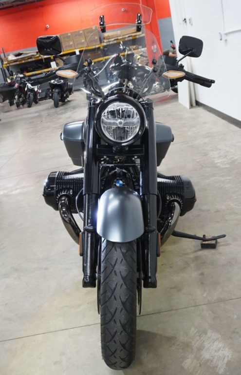 The iconic front with round LED headlight and 21-inch cast aluminum wheel leads the way towards the horizon. You casually grip the mini ape-hanger and rest your feet on the standard footboards, while the dragster seat gives you support on long tours. The elongated bagger outline flows straight to the stylish rear end, featuring hard-shell cases. This bike is an eye-catcher. Unmistakable: the unique boxer sound from the striking, dark chrome rear exhaust.
