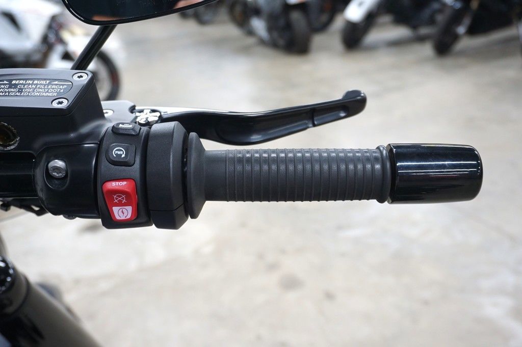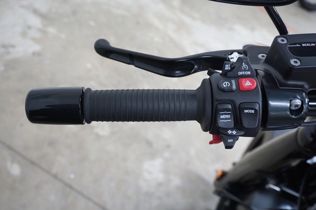 The mini ape-hanger is ideal for touring, enabling a front-wheel-oriented seating position.