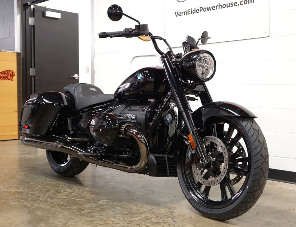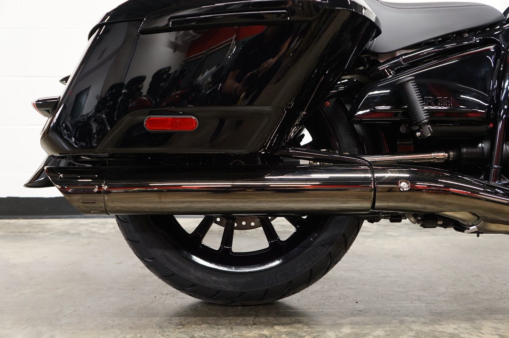 More than a bike – your statementThe iconic front with round LED headlight and 21-inch cast aluminum wheel leads the way towards the horizon. You casually grip the mini ape-hanger and rest your feet on the standard footboards, while the dragster seat gives you support on long tours. The elongated bagger outline flows straight to the stylish rear end, featuring hard-shell cases. This bike is an eye-catcher. Unmistakable: the unique boxer sound from the striking, dark chrome rear exhaust.