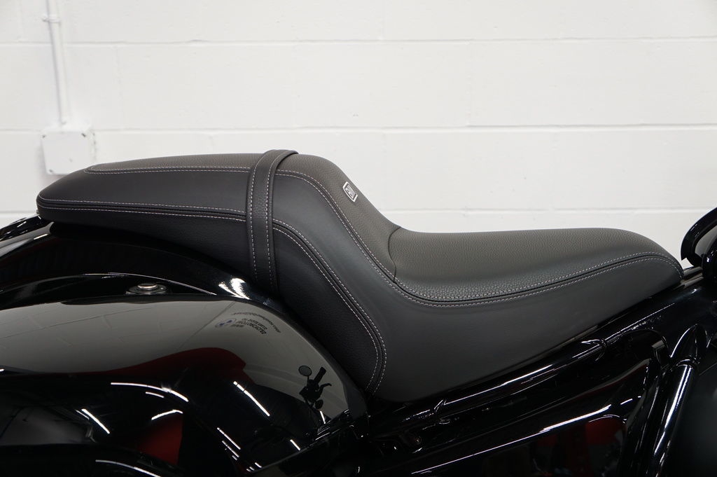 The comfortable, dragster-style seat provides support when accelerating. It offers a high level comfort and support in an upright seating position when you rest your feet on the floorboards.