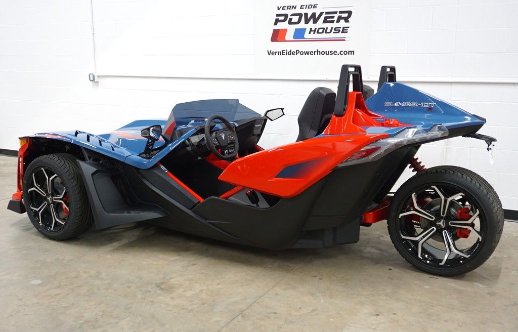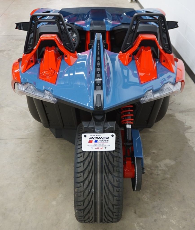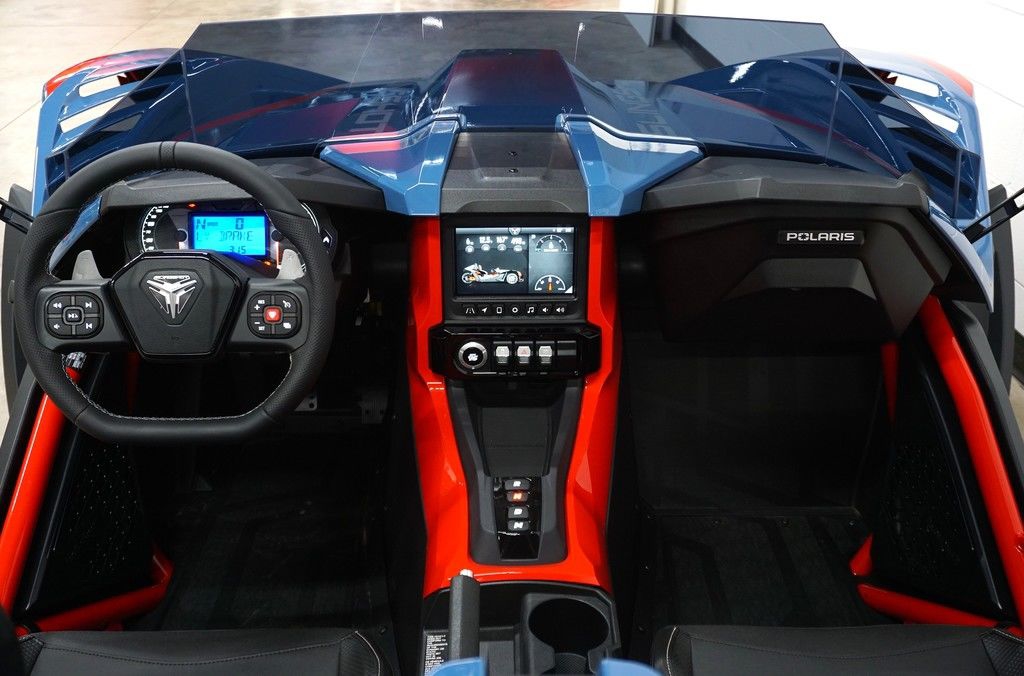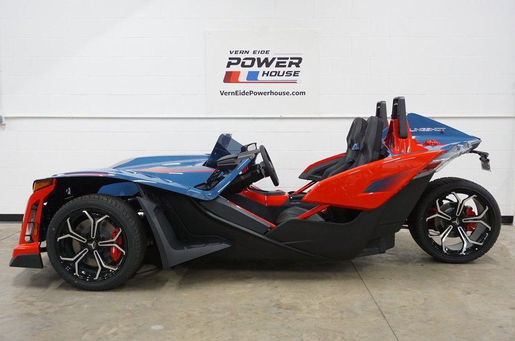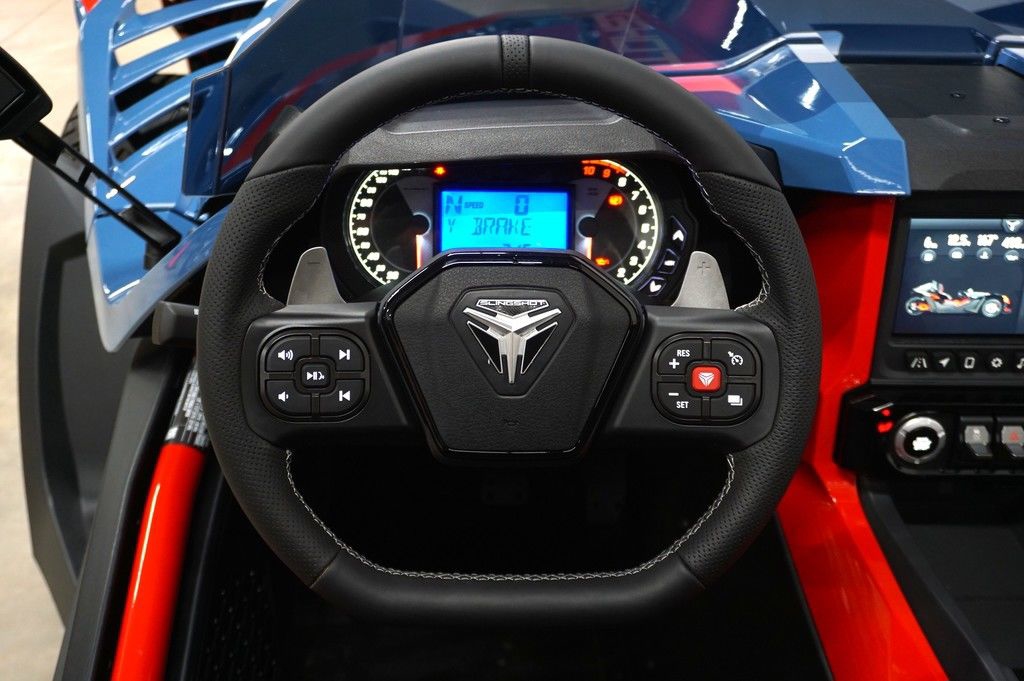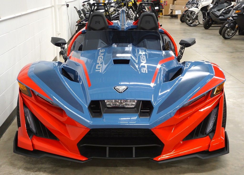 The Slingshot R delivers top of the lineup enhancements for those who never settle and love to stand out. The front end gets a high-performance facelift with the newly designed, fully painted R front fascia and the eye-catching Vented Sport Hood. Premium multi-tone paint from tip to tail, integrated navigation, Apple CarPlay®, machined wheels, and Brembo® brakes round out this top of the line model. For AutoDrive, the R model ups the fun-factor with the addition of paddle shifters. Get ready to stand out like no other—while still having plenty of options to make it your own.