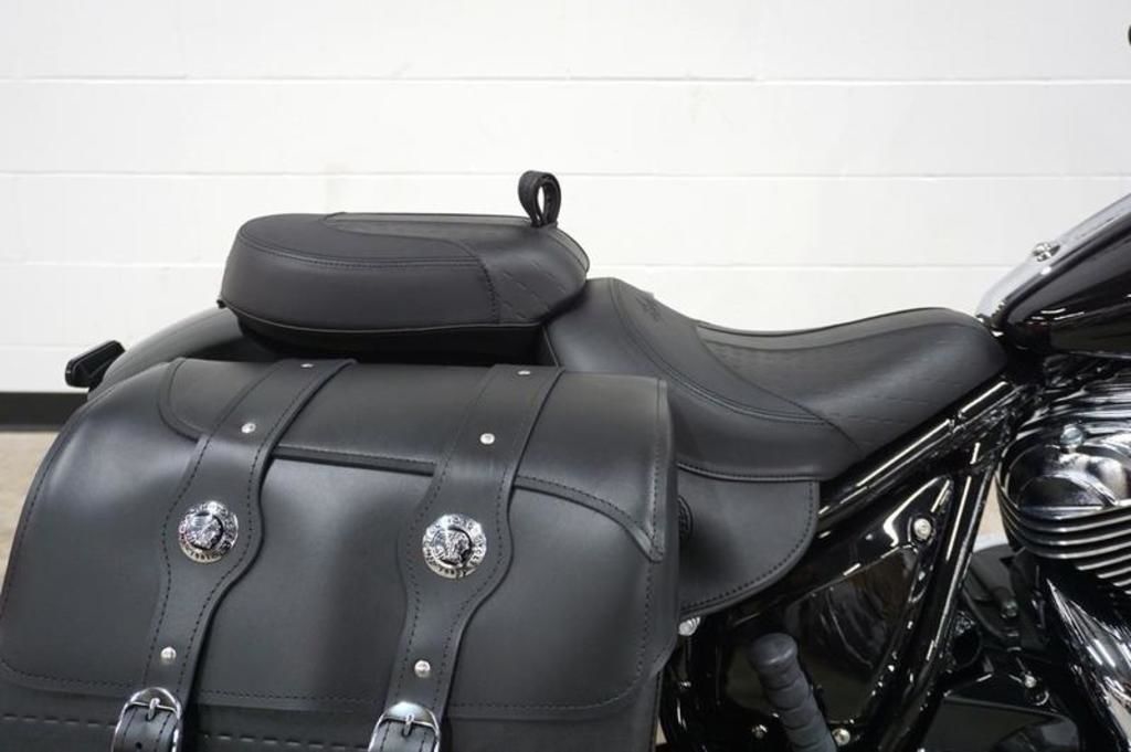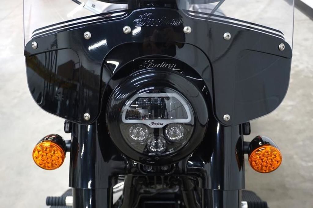 Premium blacked out or chrome finishes, fork covers, wire wheels, and large headlight nacelle, and iconic Indian Motorcycle script badging on the tank, commanding attention at every corner.