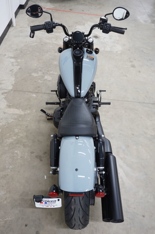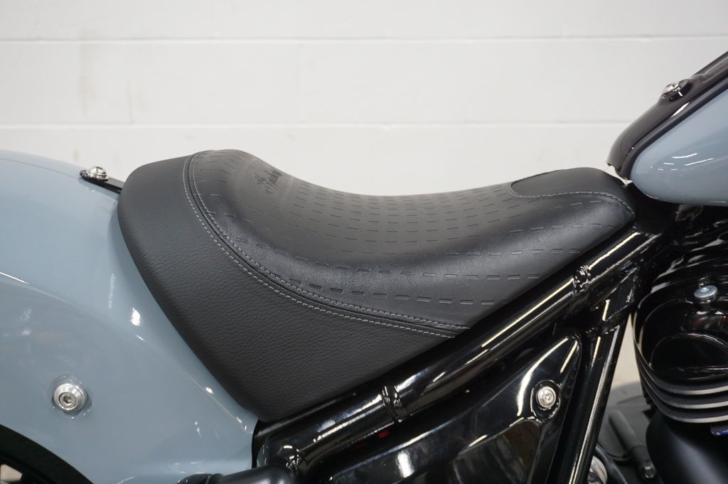 Loaded with attitude and blacked-out premium gloss black finishes with bobbed fenders. A welded steel tube frame, large headlight bucket with nacelle, and covered forks and rear shocks give a nod to traditional bobber style and deliver a visually striking experience.