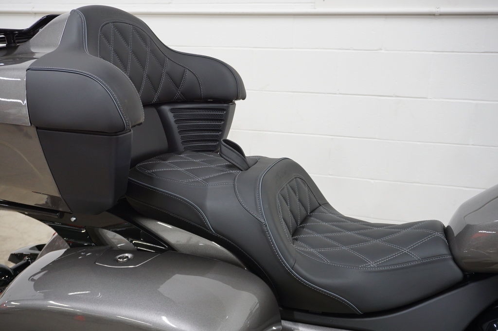 Experience unparalleled comfort on the road with the chassis-mounted fairing, electronically adjustable windshield, and heated premium seats. Whether you’re the rider or passenger, these features provide optimal wind protection and customizable warmth, enhancing your touring experience. With a chassis-mounted fairing, optional electronically adjustable Fox® rear suspension preload, inverted front forks, and a cast-aluminum frame, you have ultimate control.