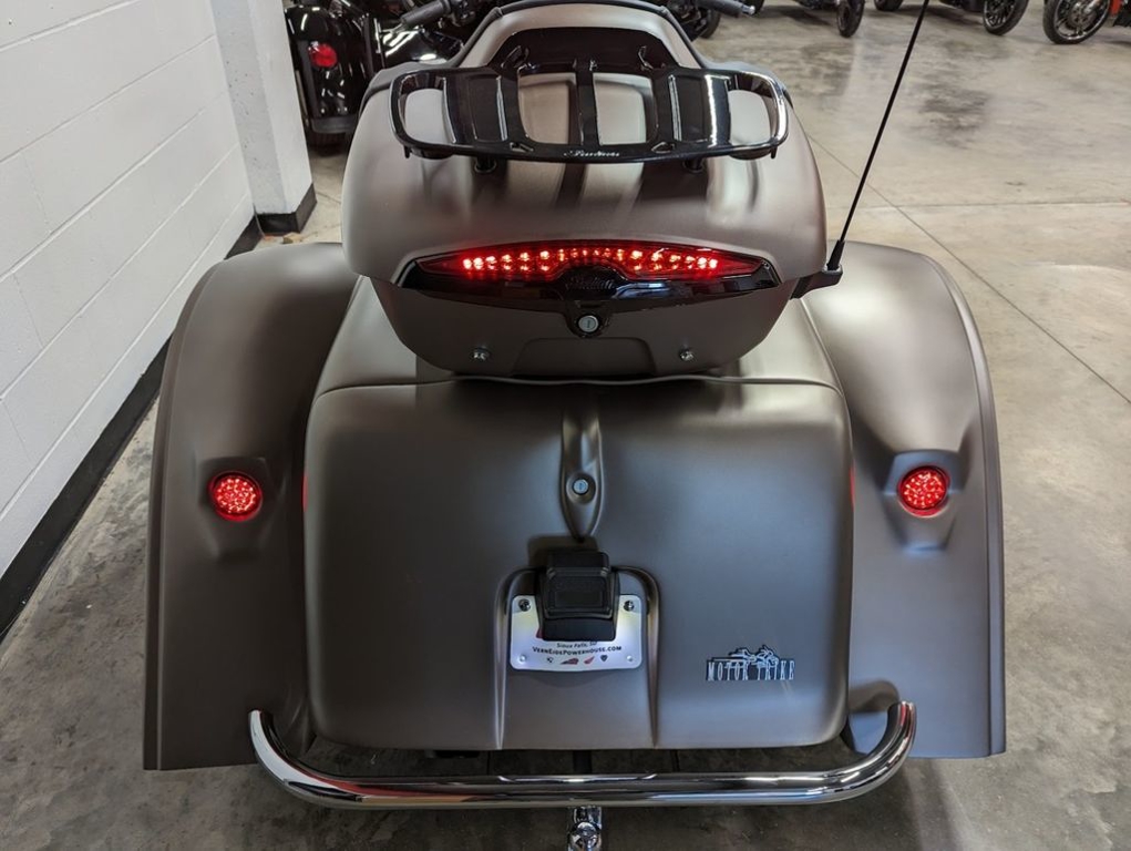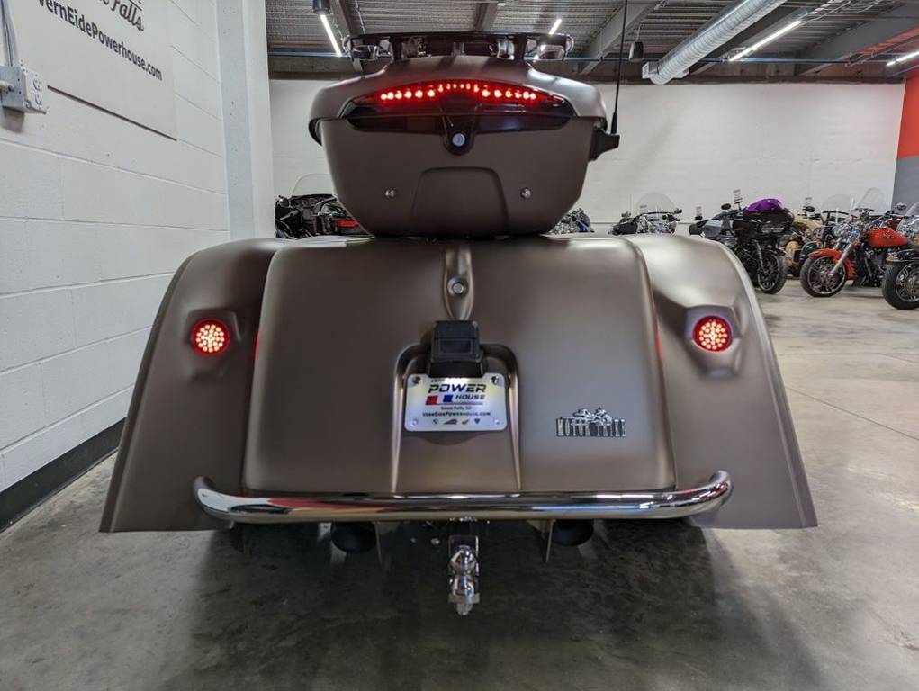 The new PowerPlus 112 cu-in engine makes 126 hp and 133 ft-lbs of torque straight from the factory. That same engine won the 2024 MotoAmerica King of the Baggers Championship.