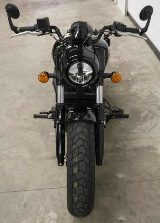 Blacked out front to back with chopped bobber fenders and Headlight Nacelle, it leans hard into a mean bobber vibe.