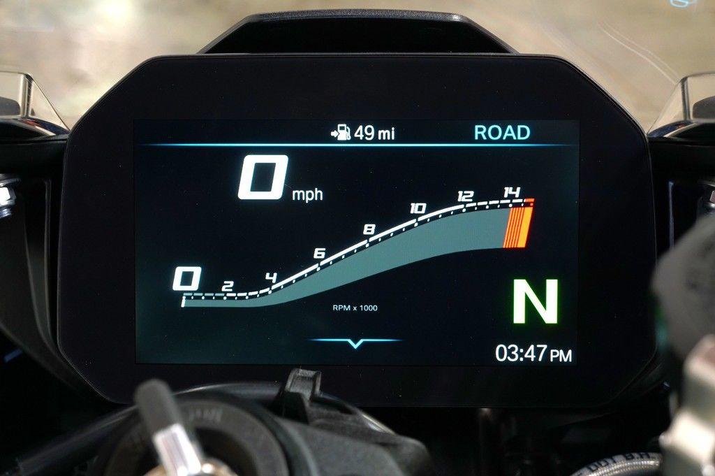 Less helmet vibrations: the front with the high windscreen provides outstanding aerodynamics around the head. The isolation of the fork bridge brings about further aerodynamic advantages.