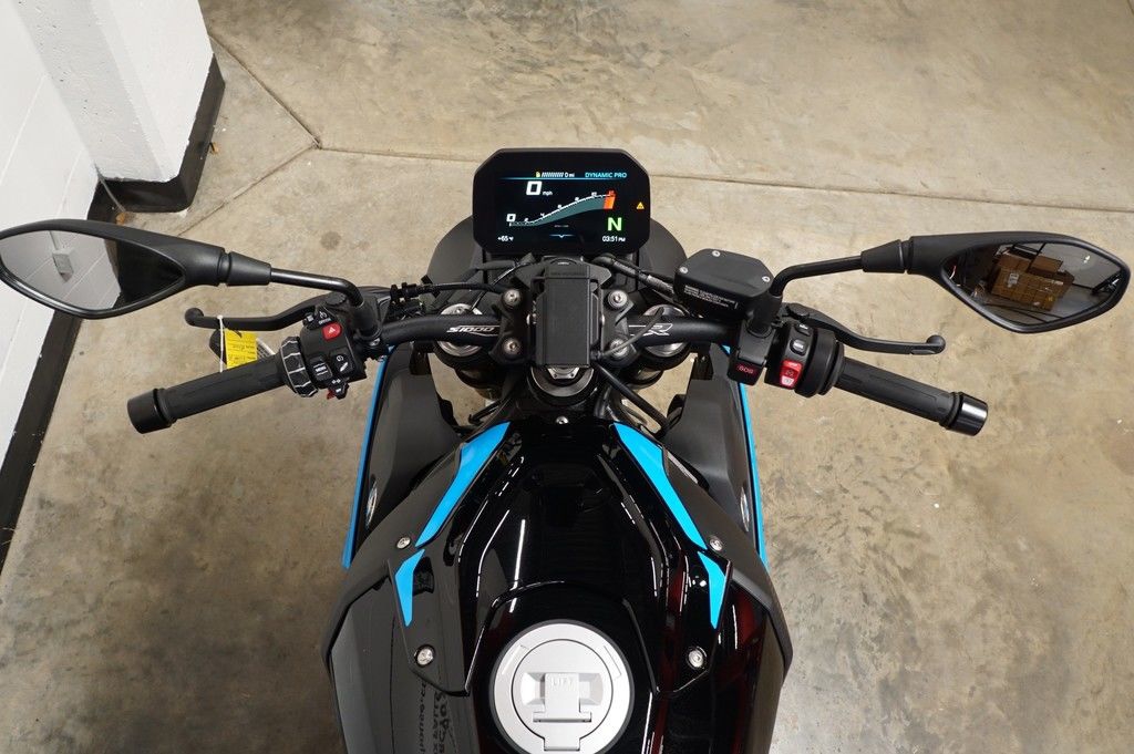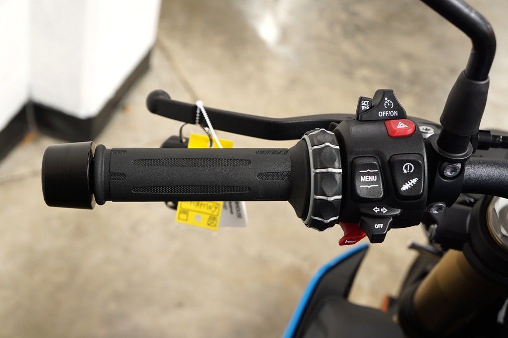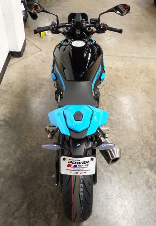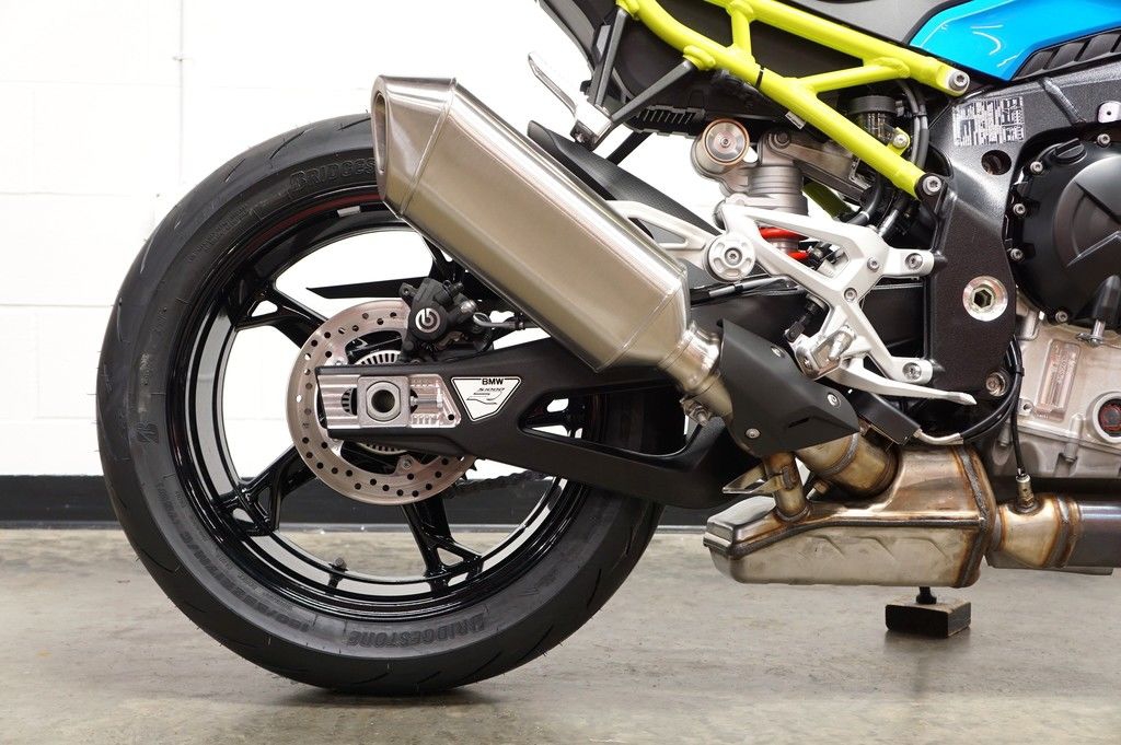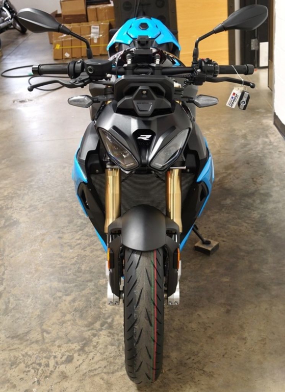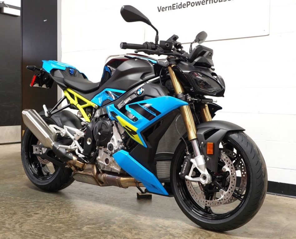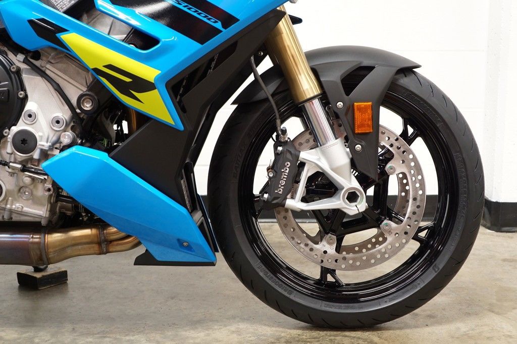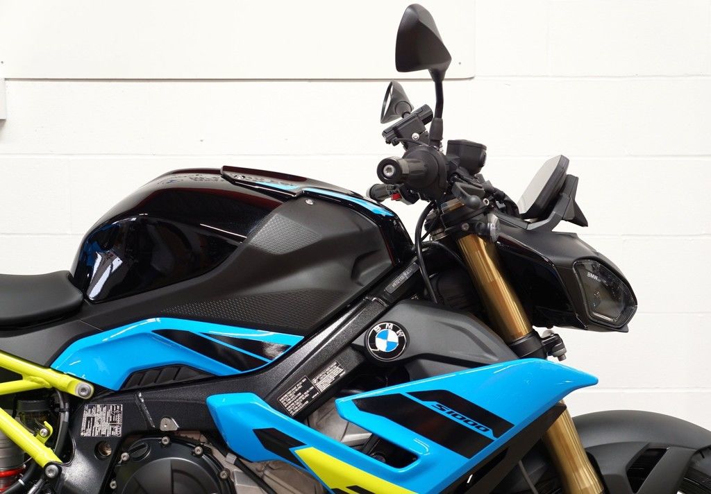 The S 1000 R Sport with the Bluefire/Mugiallo Yellow paint has a dynamic look. Tinted windscreen is not available in the U.S.