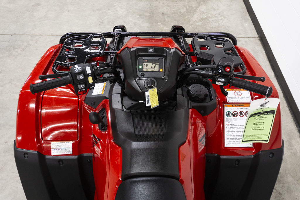 The digital meter display includes a Maintenance Minder system that signals when it’s time for service. Other functions include a trip odometer, hour meter, gear position indicator, fuel gauge, clock, and 2WD/4WD.