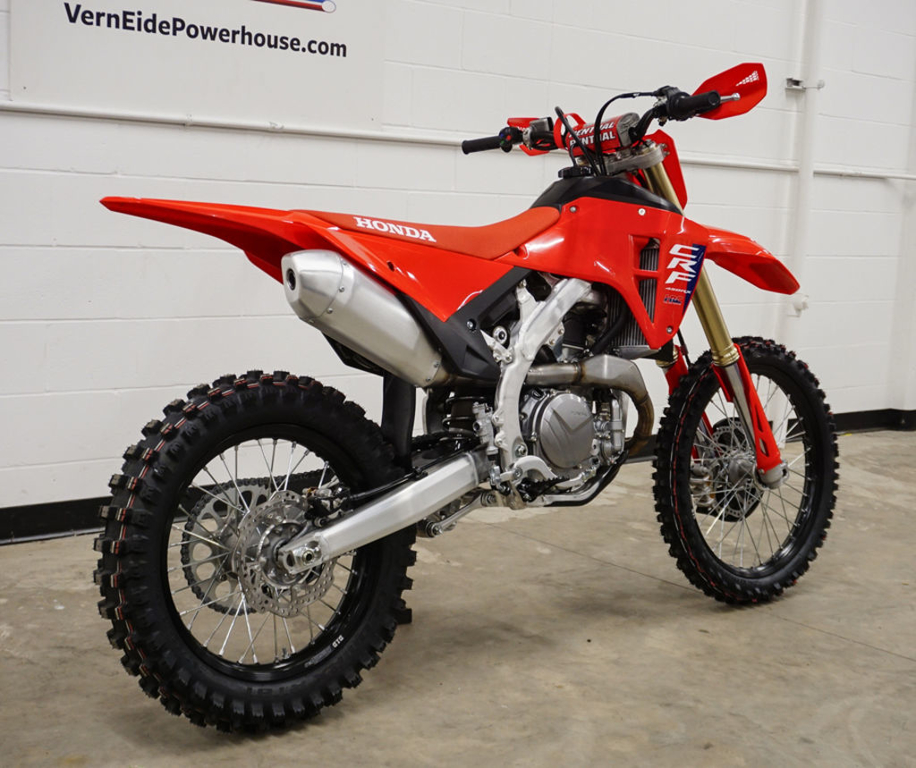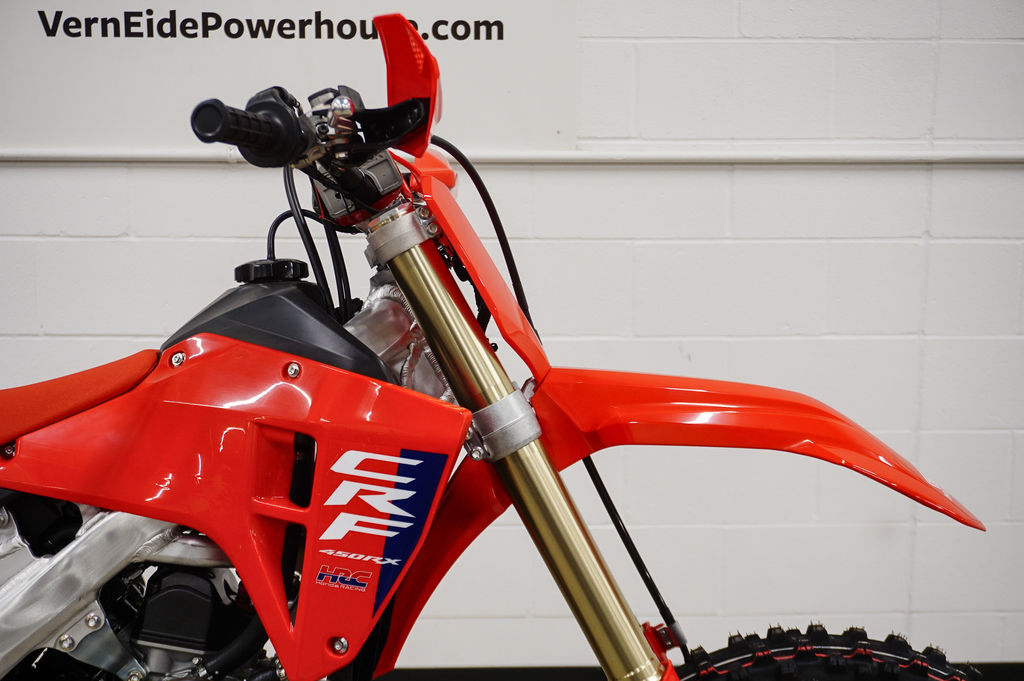 Here’s a secret the best off-road riders know, and everyone learns eventually. While motocross bikes are light and fast, they’re built for the track. When you’re riding off-road at a championship level, you need a specialized machine. . . .a machine like our CRF450RX. You’ll get the power, agility, and precise handling of a factory motocrosser with the ruggedness and specialized suspension you need to conquer wide open riding. For 2025 the RX gets all the changes we’ve given our CRF450R (new tank shrouds, new frame, new shock linkage, new front brake) and combines that with a wide-ratio five-speed transmission, 18-inch rear wheel, Honda Selectable Torque Control and more. All in all, it’s as unbeatable off-road as our CFR450R is on a Supercross or Motocross track. And that’s saying something.