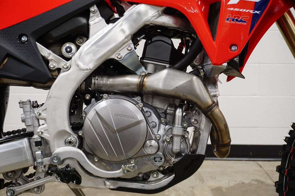 ENGINEERINGThe CRF450RX includes a hydraulically actuated clutch. Made by Nissin, it’s the same design as in our Grand Prix MX machines, and performs better than third-party conversions. You get a clutch-lever pull that’s ten percent lighter at its peak, even though it’s paired with a stronger clutch. Plus, you’ll never have to worry about making a clutch-cable adjustment, even during the longest events.