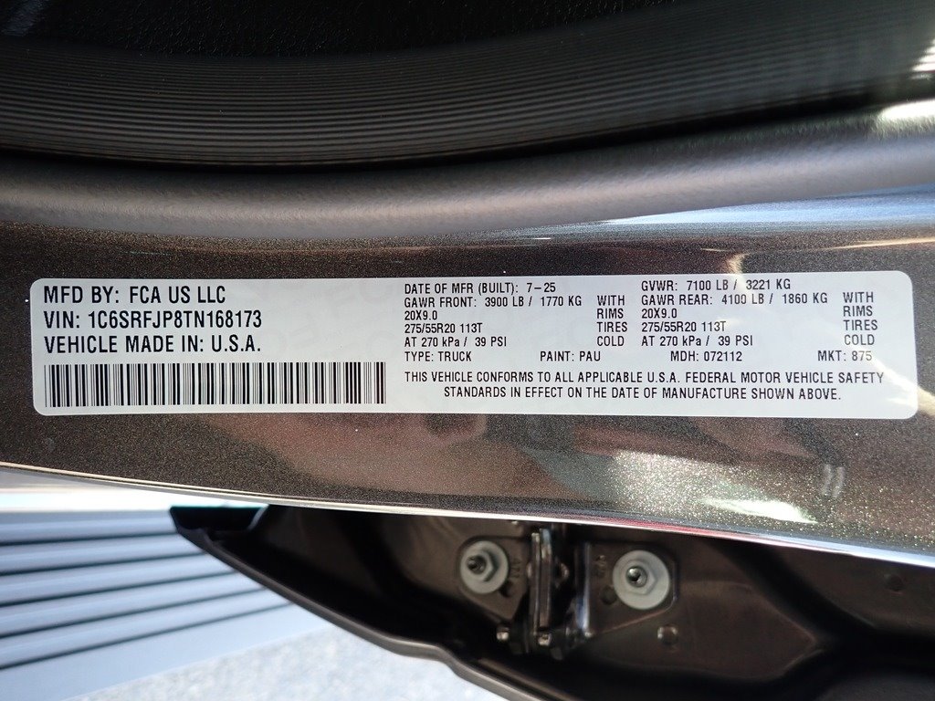 • VIN: 1C6SRFJP8TN168173