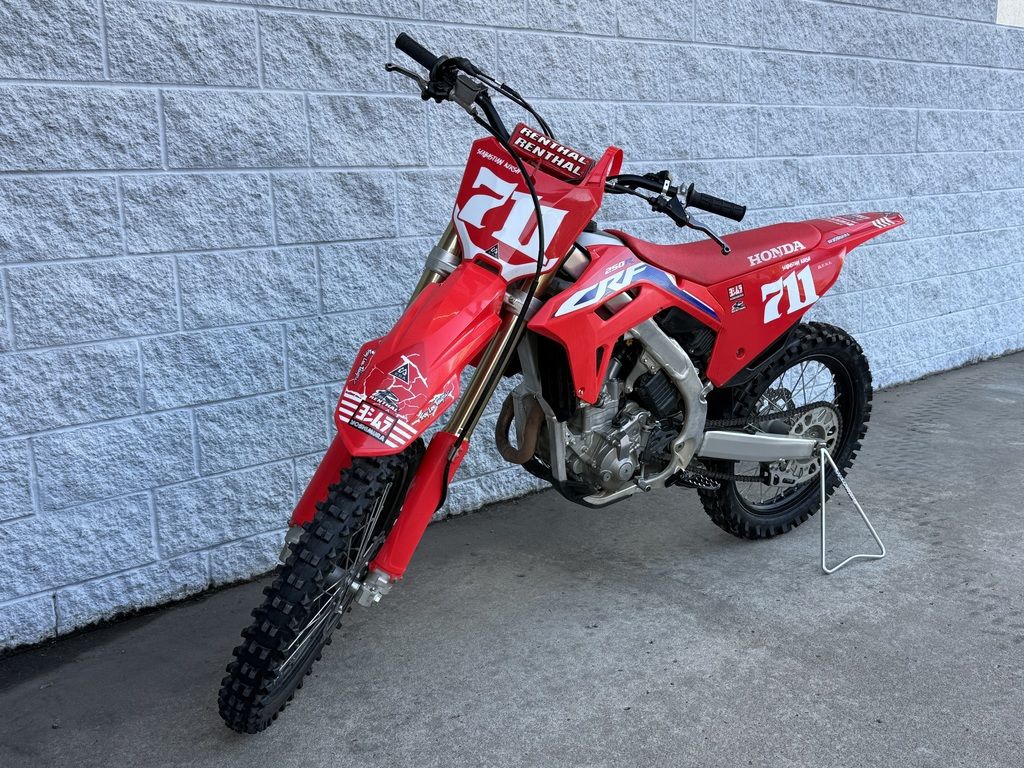 Horsepower is horsepower, right? Anybody who’s ever raced knows it’s a lot more complicated. Where your bike makes its power is at least as important as how much power it puts out. And that’s where our 2022 Honda CRF250R is a real game changer. Because we’ve made some big improvements to this bike’s engine, giving it way more power and torque in the midrange. And that means it’s easier to ride fast, because the midrange is key in critical track sections like whoops, managing jumps, or blasting out of deep loam and berms. And to handle all that extra torque, we’ve also given it a new nine-plate clutch. Finally, there’s the new single-pipe exhaust, a big contributor to the CRF250R’s lighter overall weight. Plus, the pipe’s design helps slim the bodywork so it’s even easier for you to move around.