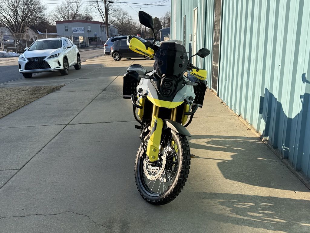 Visually stunning, the all-new angular bodywork retains Suzuki’s distinctive Adventure “beak” and is available in Champion Yellow No. 2 or Glass Matte Mechanical Gray topped with new, subtle graphics.