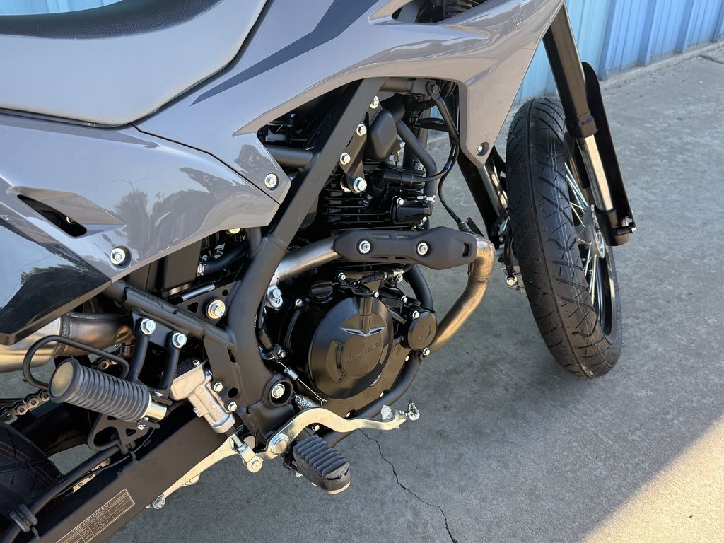 Turn up the fun on the streets with the lightweight KLX®230SM ABS supermoto motorcycle. Experience an exciting spread of power tuned for low- to mid-range acceleration, making it that much more fun to navigate through the city. Lightweight and nimble handling starts with a compact chassis while sporty 17-inch wheels with road tires adds confidence and capability on the streets.
