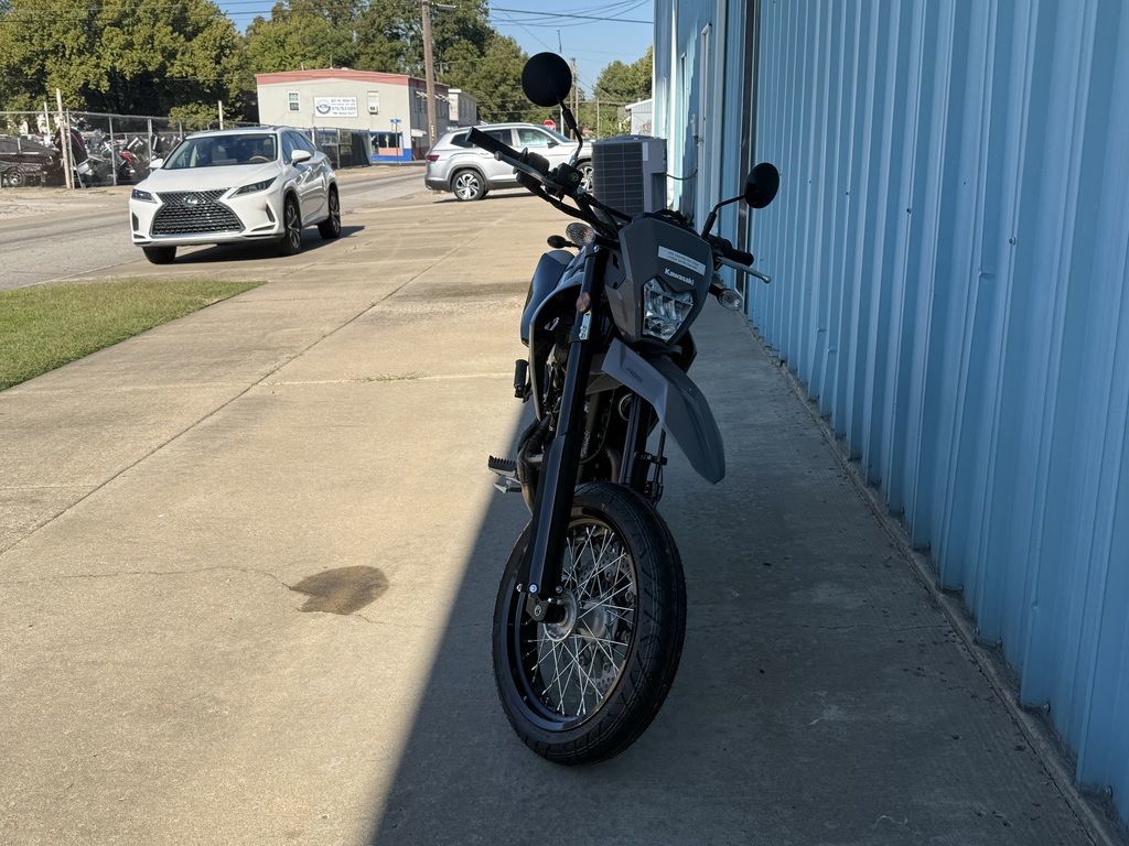 Turn up the fun on the streets with the lightweight KLX®230SM ABS supermoto motorcycle. Experience an exciting spread of power tuned for low- to mid-range acceleration, making it that much more fun to navigate through the city. Lightweight and nimble handling starts with a compact chassis while sporty 17-inch wheels with road tires adds confidence and capability on the streets.