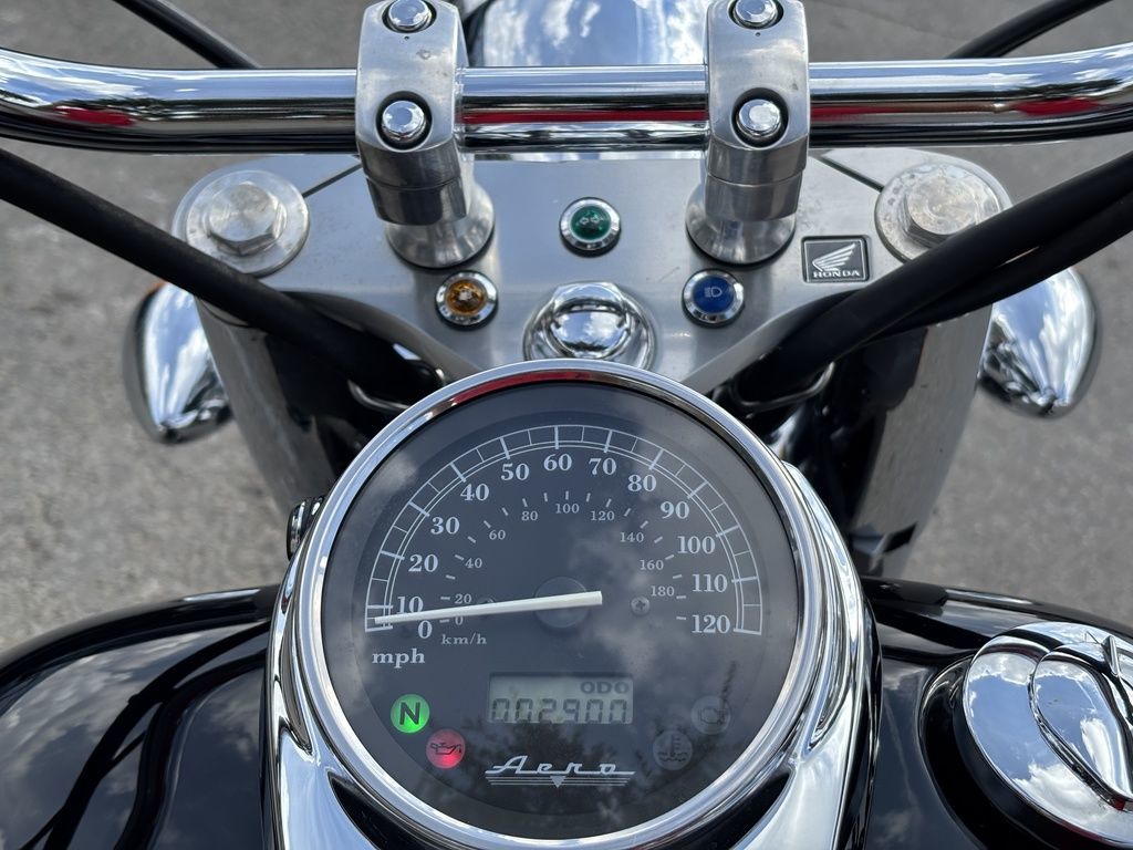 Skimming the pavement at just 25.9 inches, the Aero’s low seat height makes flat-footing it at stoplights or in parking lots a breeze. And the Aero’s narrow seat/tank junction makes it feel even lower.