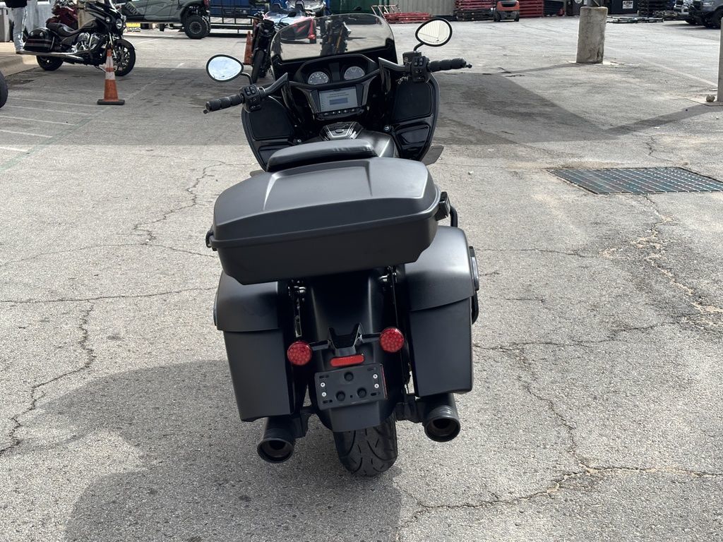 Aggressive fairing design with full LED lighting and menacingly styled running lights provide a signature face that leads the way in both style and function. Blacked out finishes and premium paint add to the mean look.