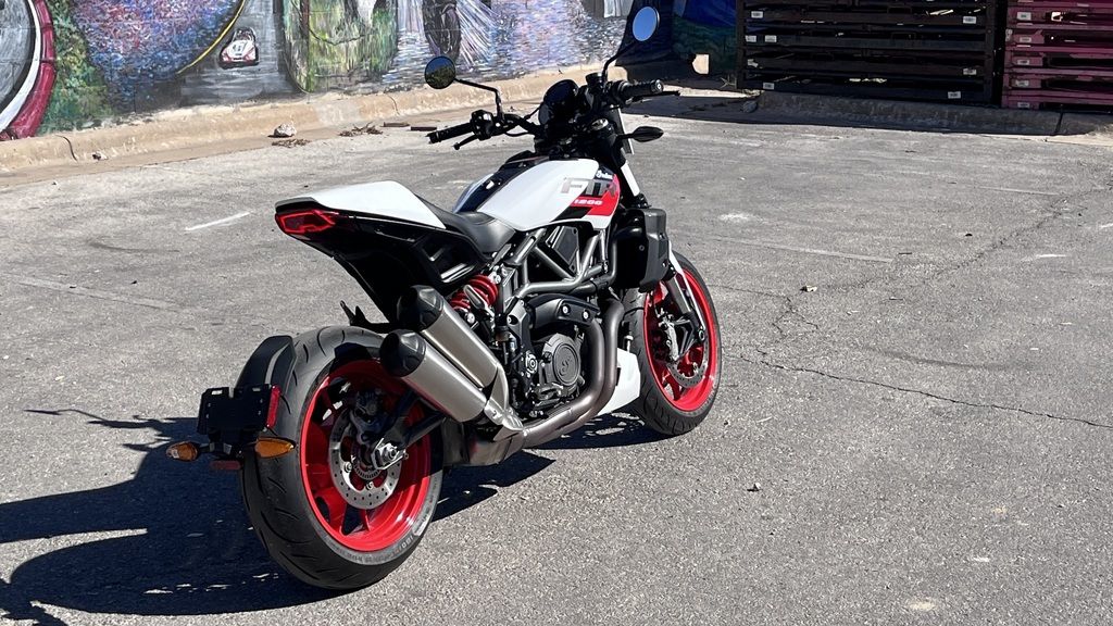 Fully adjustable 43mm upside down front fork and single, exposed rear shock make the FTR Sport stand out in the crowd. Massive Brembo® 4-piston mono block calipers grab dual 320mm rotors and are specifically tuned for incredible control and braking power. Stoppies are optional, and only two fingers away if you’re so inclined.