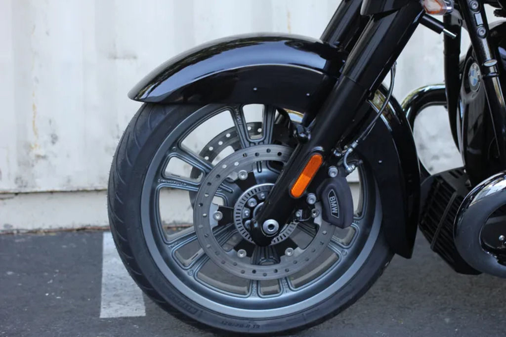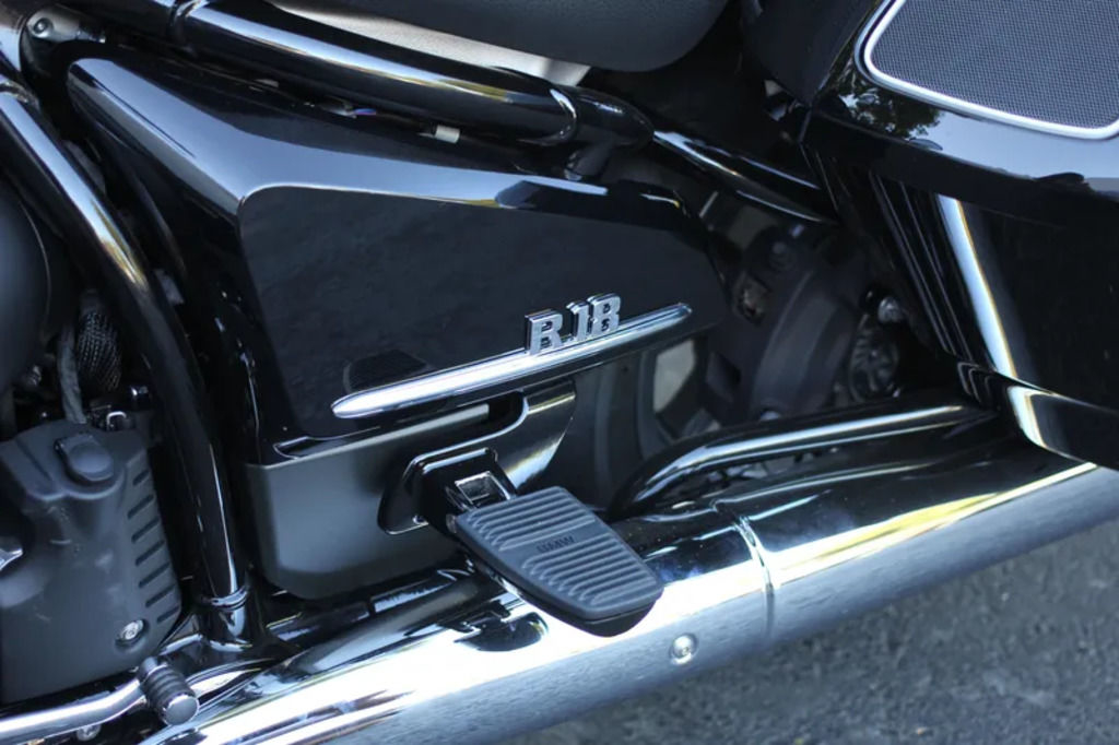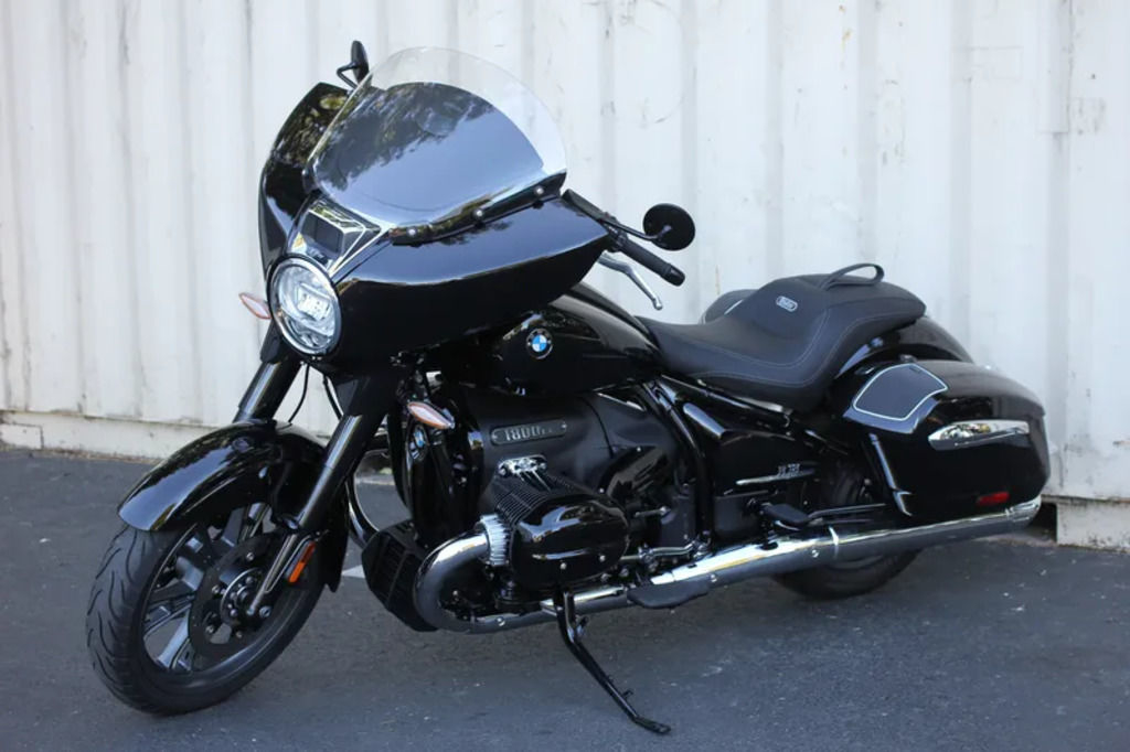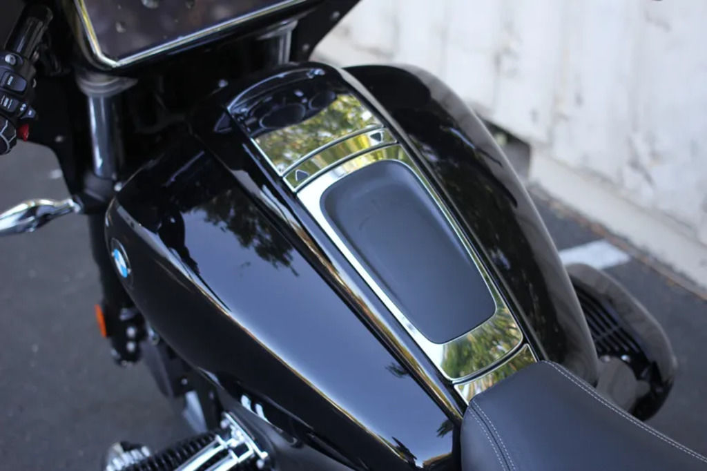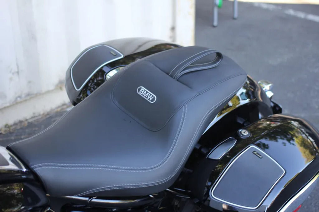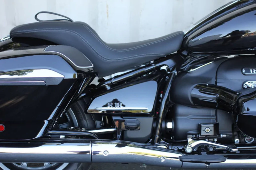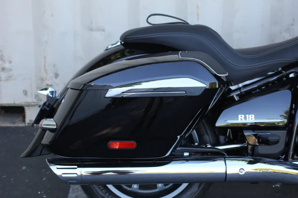 The integrated side cases provide a capacity of over 7 gallons each. Their stylish shape has been integrated into the R 18 B’s streamlined outline: for an unmistakable bagger look. The perfectly coordinated liners made of a sophisticated leather and canvas material mix are available as part of the accessories range.