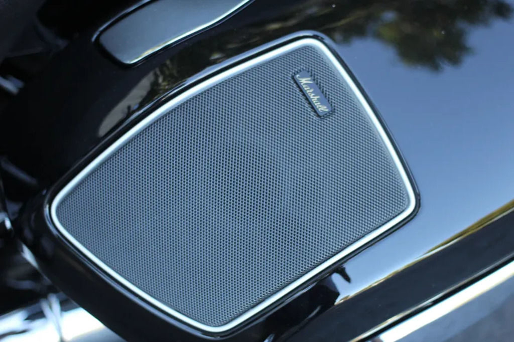 Available gray cover grilles and golden Marshall lettering: these are the elements that conceal the refined sound quality from a total of four speakers powered by a 180 watt amp.