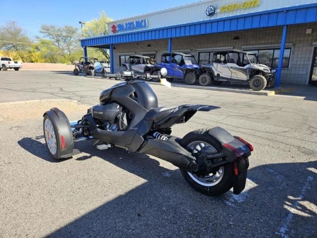 The Can-Am Origin '73 is a tribute to the original Can-Am motorcycle from 1973. This specific model feature a unique coloration, exclusive trims and badging nodding to our heritage, a windshield and signature LED lights.