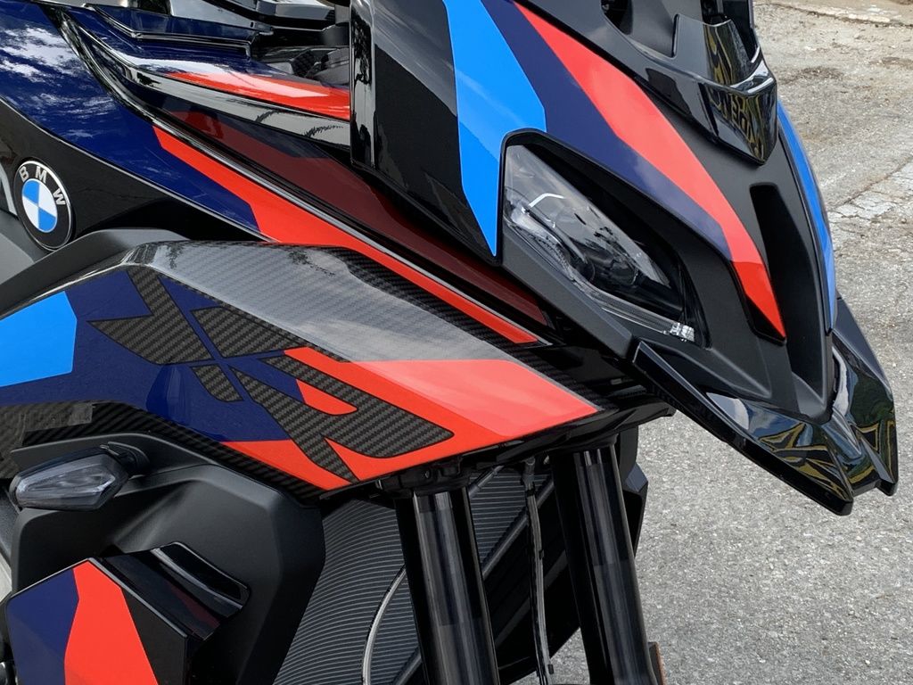 The front has an "all-black" finish, including the milled, black, upper fork bridge and legs. The M colors create an unmistakable visual asymmetry and, together with the tinted Sport windscreen, emphasize the bike's performance-oriented character.