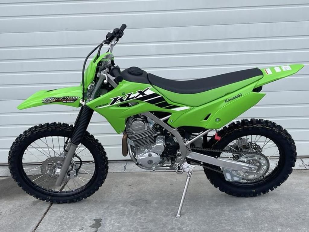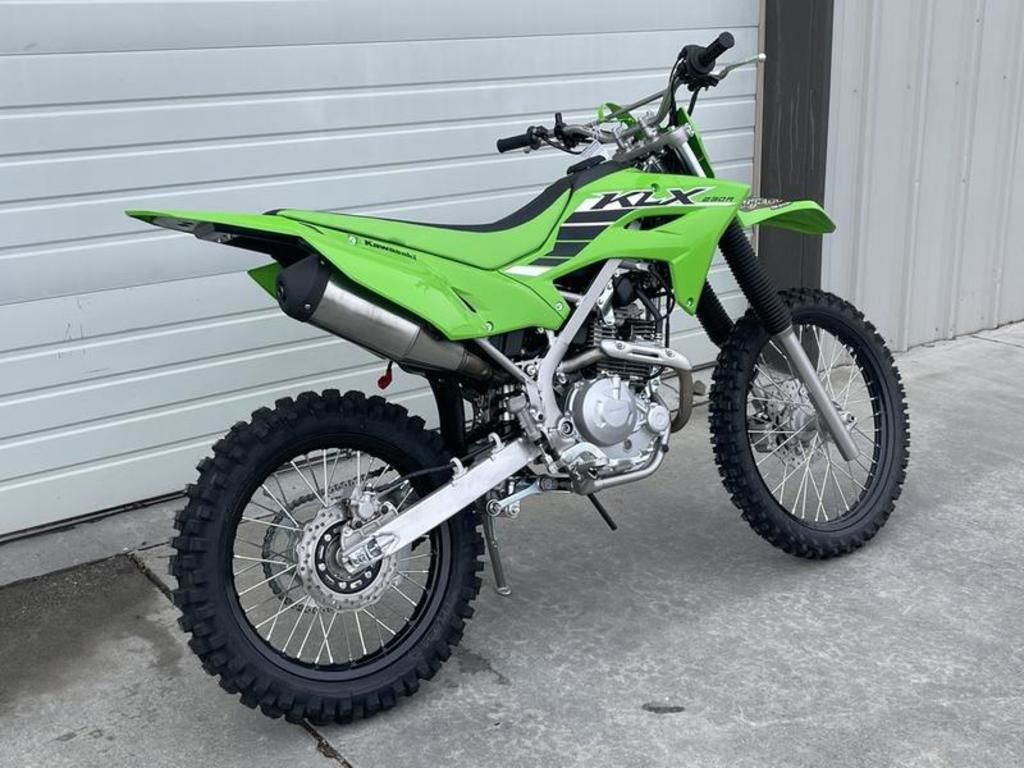The full-size fun of the new KLX®230R trail bike means it's time to Get Out And Play. Take on terrain with nimble handling and plenty of power, while kicking up some serious dirt along the way. Long-travel suspension paired with improved low-speed control give this bike a sporty feel that stands out among the rest. Finished with styling inspired by the KX™ lineup, the highly capable, lightweight package of the KLX230R brings a heavy dose of fun to every off-road ride.