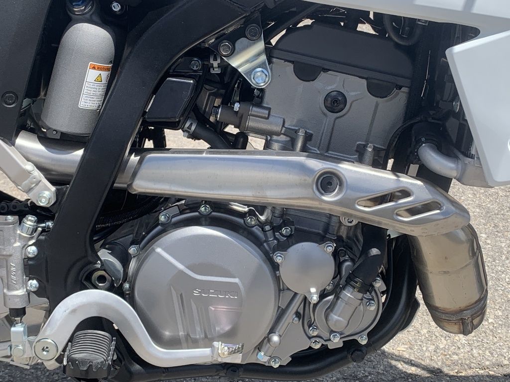 Engine- The DR-Z4SM is powered by a thoroughly updated 398cc single-cylinder four-valve DOHC engine that delivers a smooth, controllable spread of torque from low RPM up through peak power. The redesigned cylinder head has optimized shapes for the intake port, intake valve boundary, and a smooth, flat combustion chamber that produces better combustion to provide consistent power under low loads with strong power output under heavier loads. The DOHC cylinder head contains a pair of lightweight titanium intake valves and a pair of hollow, sodium filled exhaust valves that help maximize combustion efficiency and performance.