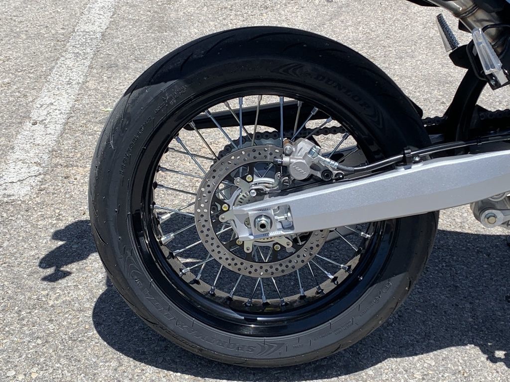 • The new frame and sub-frame provide a similar, ergonomically-sound riding position as the outgoing DR-Z400SM. To better suit on track riding, the new large diameter tapered aluminum handlebar’s grip position is set in the same height as the DR-Z400SM but are 0.78 in. (20 mm) farther from the rider, while the new, wider rider’s pegs are set at the same height but are 0.70 in. (18 mm) farther back. The DR-Z400SM’s seat height of 35.0 in. (890 mm) is retained on the DR-Z4SM.