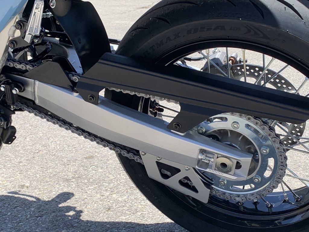 • Supplied by KYB, the new long stroke, inverted cartridge-style fork has adjustable compression and rebound damping force with 10.2 in. (260 mm) of travel for smooth performance on all types of on road and on track surfaces. The new frame and fork also update the fork rake and trail specifications for a balance of nimble handling and straight-line performance. The new, rear KYB shock absorber has 10.9 in. (277 mm) of rear wheel travel with spring preload plus both compression and rebound damping force adjustments, and connects to a new, lightweight aluminum swingarm through a progressive linkage system.