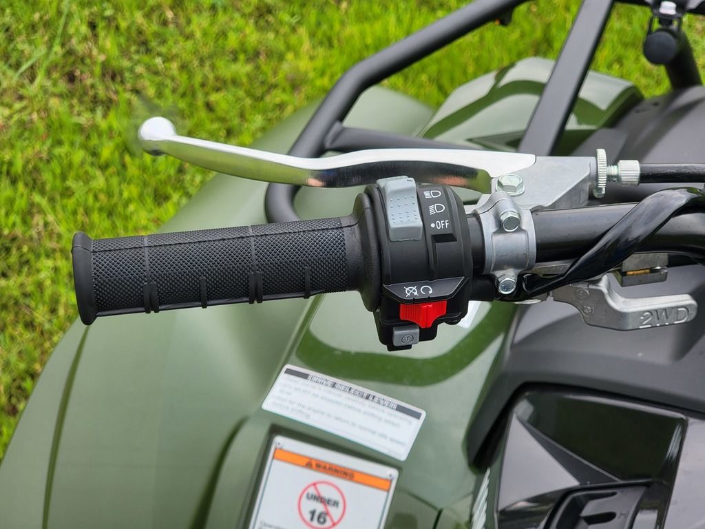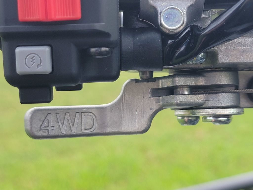 Paired halogen headlights ensures good visibility, while a handlebar-mounted halogen work light provides additional illumination that moves with rider input for added flexibility.