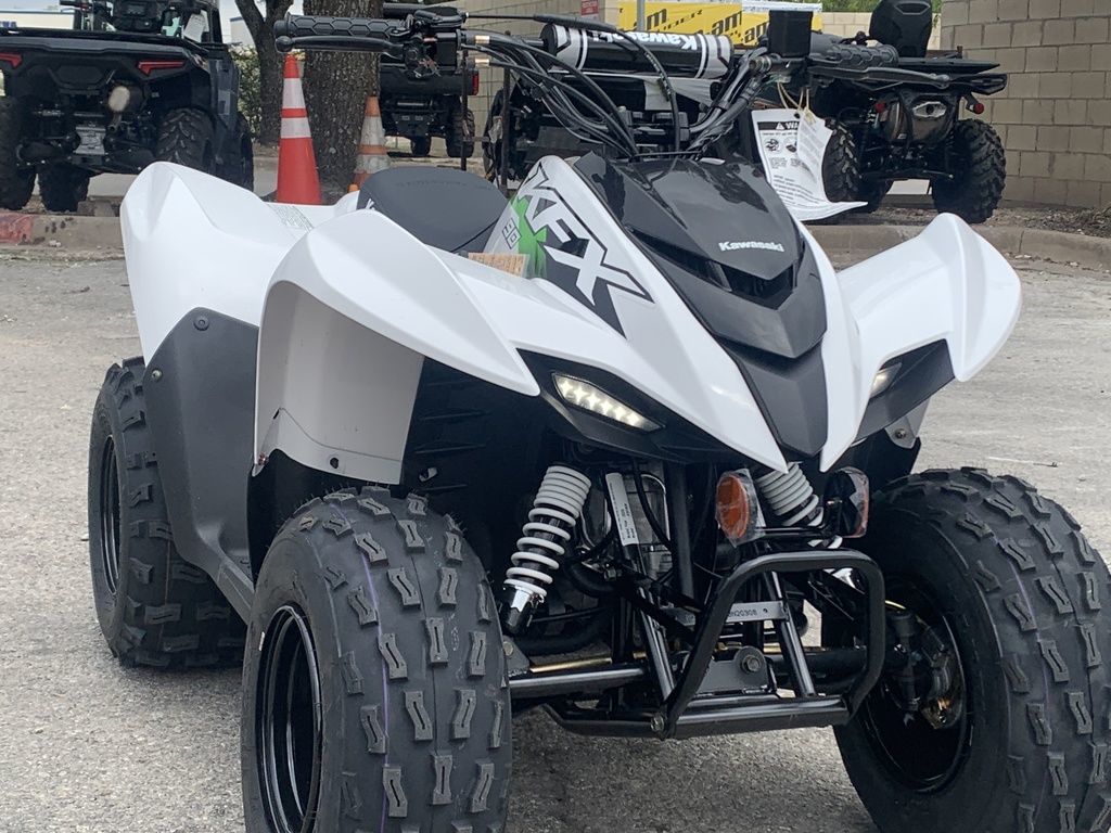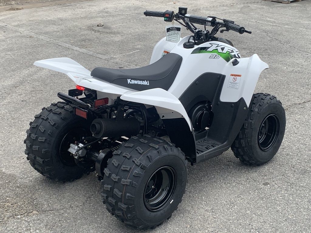 Four-wheel fun starts with KFX®. Get the kids outdoors and ready to ride on the KFX®90 ATV line with proportionate power and size for riders ages 10 and older. KFX90 ATVs let kids take on more challenging tracks and bigger adventures with an 89.9cc engine and sporty suspension.