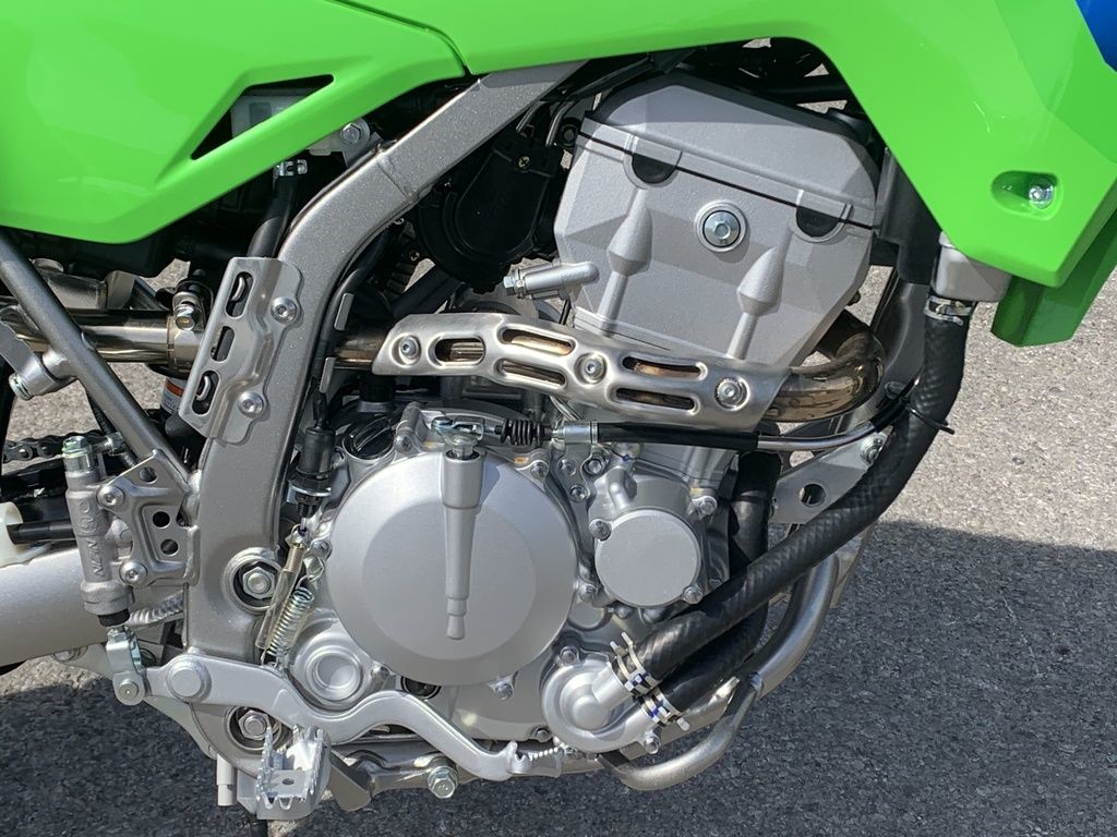 At the heart of the KLX®300 ultimate lightweight dual-sport, is an enduro-inspired 292cc engine, fuel-injected and liquid-cooled for consistent performance even when the action heats up. This DOHC 4-stroke engine boasts a strong low- and mid-range, with exhilarating top-end pulling power. Power delivery is smooth and throttle response is crisp throughout the rpm range making this the ideal machine for a variety of riding situations. For added comfort especially in heavy traffic, the innovative radiator fan directs hot air down and away from the rider, improving rider comfort. Electric start offers easy starting; fuel injection helps with reliable starting in a wide range of conditions and contributes to improved fuel economy.