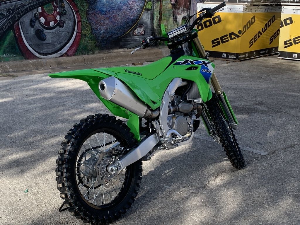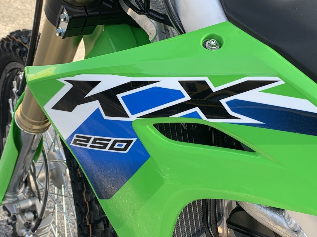 Race to victory on the bike built for winning. This KX™250 motorcycle is the most competitive racing package yet, with a lightweight chassis, high-performance engine, and race-ready electronic features like Power Mode Selection and Kawasaki TRaction Control (KTRC). Plus, cutting-edge technology like ERGO-FIT® components and RIDEOLOGY THE APP KX™ offer maximum adjustability, so you can find your unique winning style. Be the fastest in the pack. Be the next champion on the KX250.