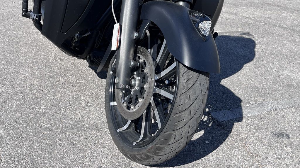 Confident and mean American style makes a bold statement with premium blacked-out finishes front-to-back. Command attention with the iconic headdress atop an open fender showing off a 19-inch contrast cut spoked front wheel.