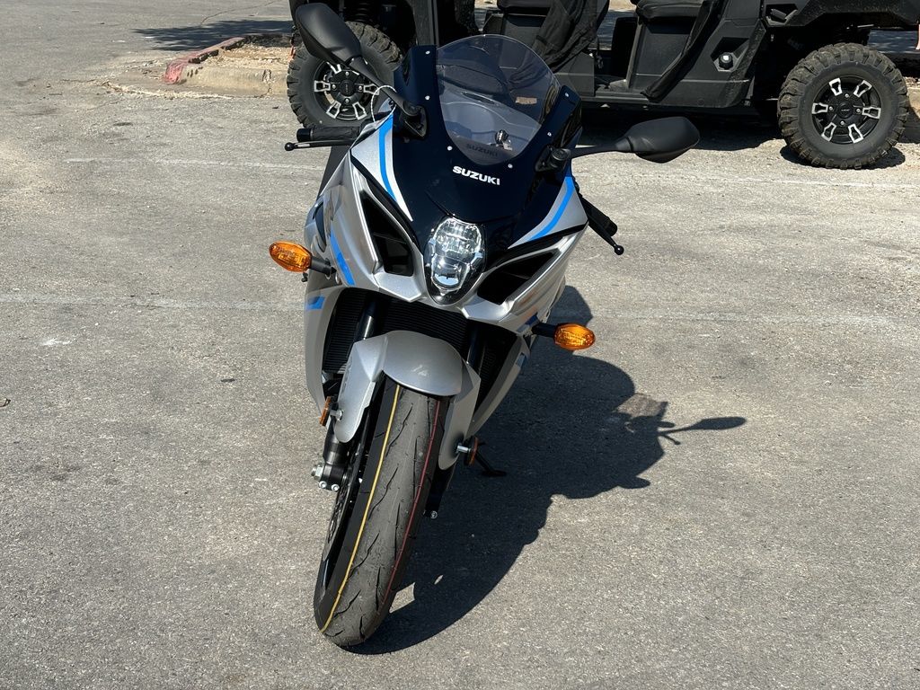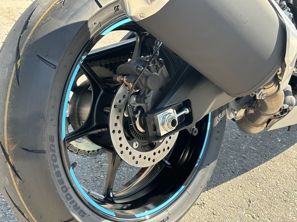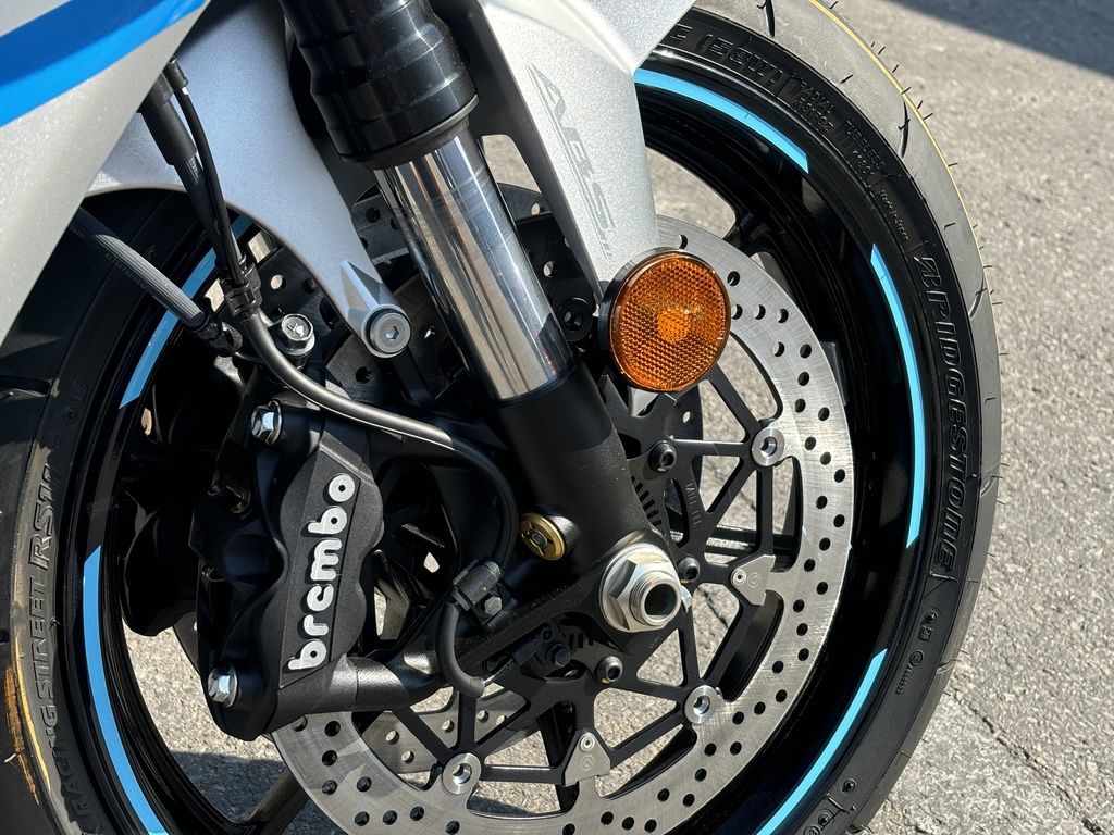 Body & Styling- The 2025 GSX-R1000 aerodynamic bodywork is coated in a new Candy Daring Red and Glass Sparkle Black with dark red wheels, or a Mechanical Matte Sword Silver with new, bright blue graphics on the fairing and on the black wheels.